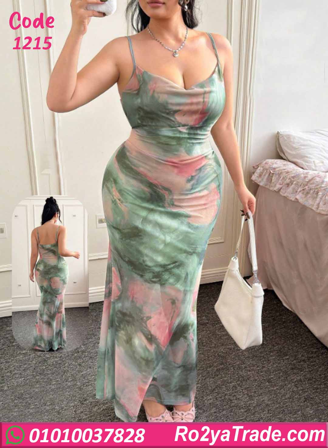 دريس لانجري طويل بألوان مموّهة بين الأخضر والوردي بتصميم أنثوي جذاب، يبرز القوام ويدي شكل ناعم ومثير في نفس الوقت.