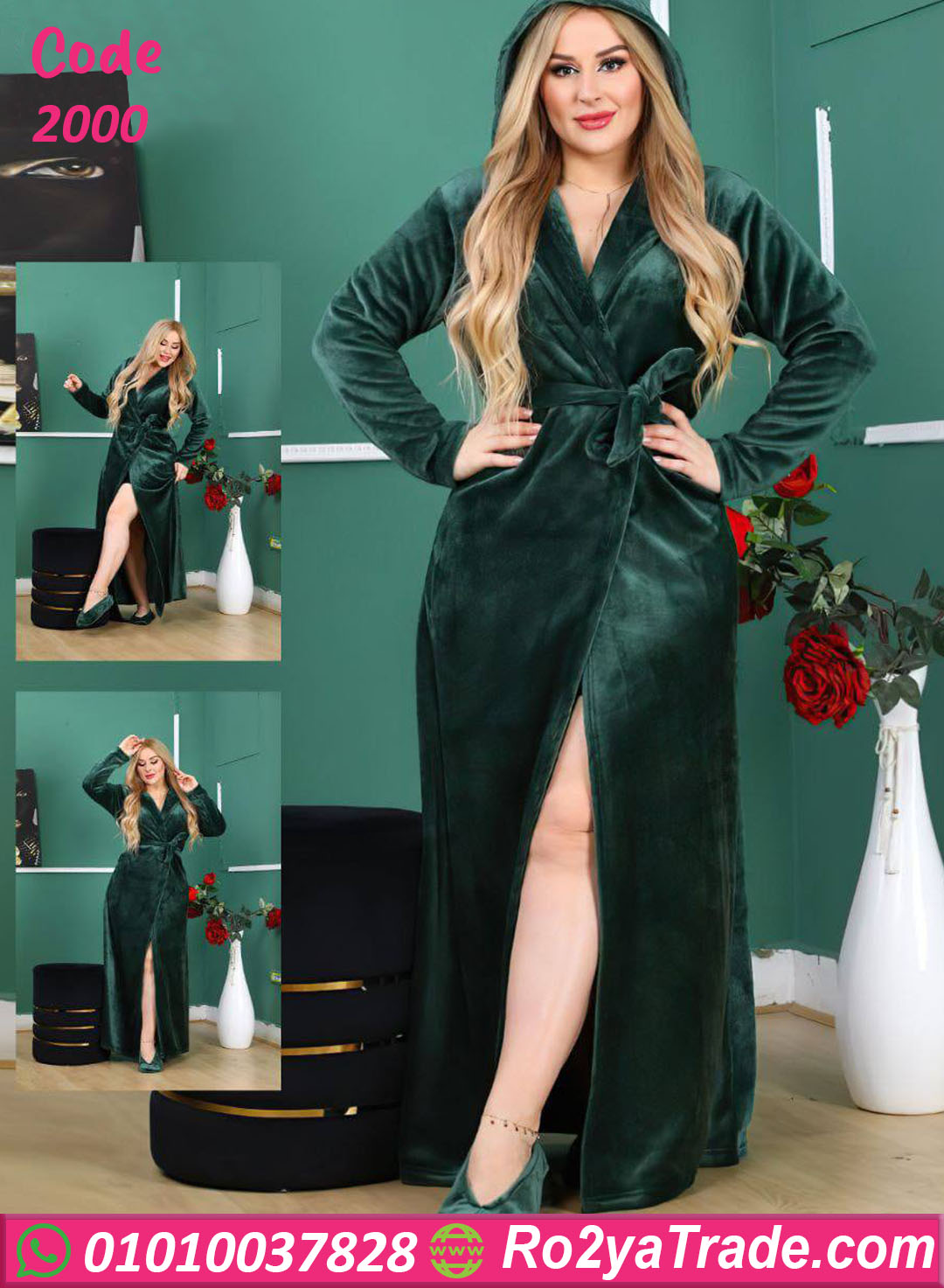 مصنوع من خامة القطيفة الفاخرة اللي بتخلي الملمس ناعم ودافي، بتصميم طويل عملي لحد الكاحل مع رباط ع الوسط يبرز القوام، وغطاء رأس شيك بيدي لمسة أنوثة وأناقة.