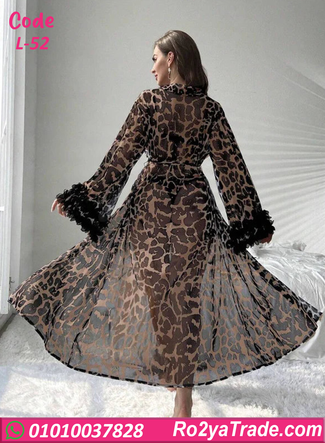 روب لانجري طويل بخامة شيفون خفيفة وشفافة، مريح على الجسم وبيتحرك بانسيابية.