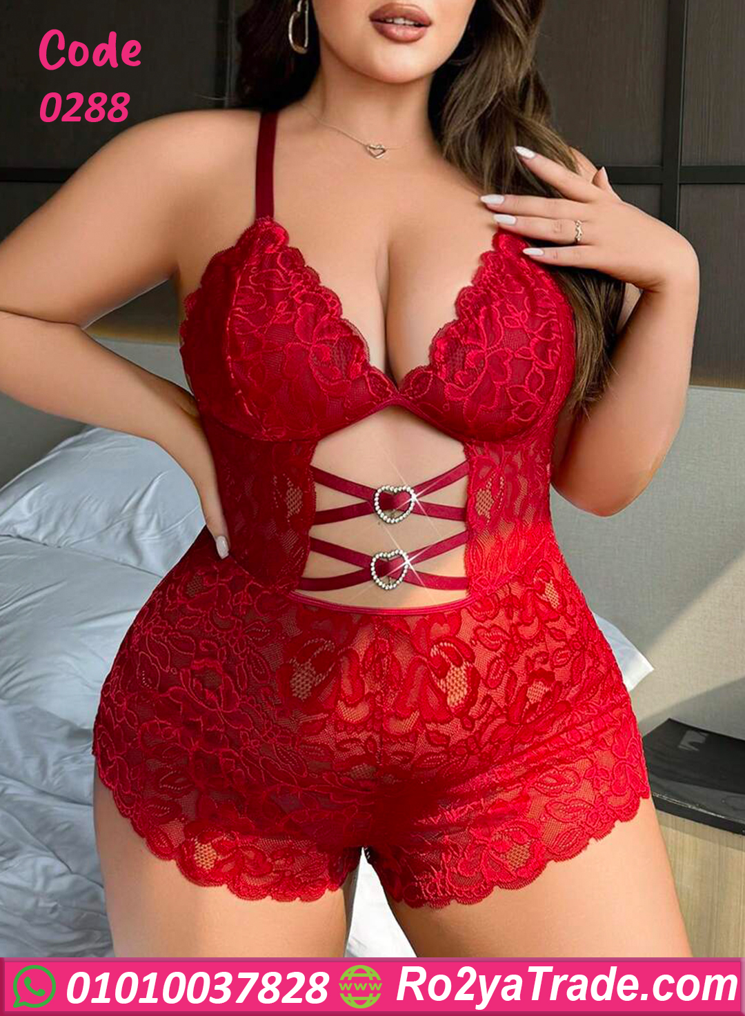 طقم دانتيل أحمر ناعم مصمم بتفاصيل جذابة تبرز جمال الجسم وتدي لوك مغري وأنثوي بلمسة فخمة ✨