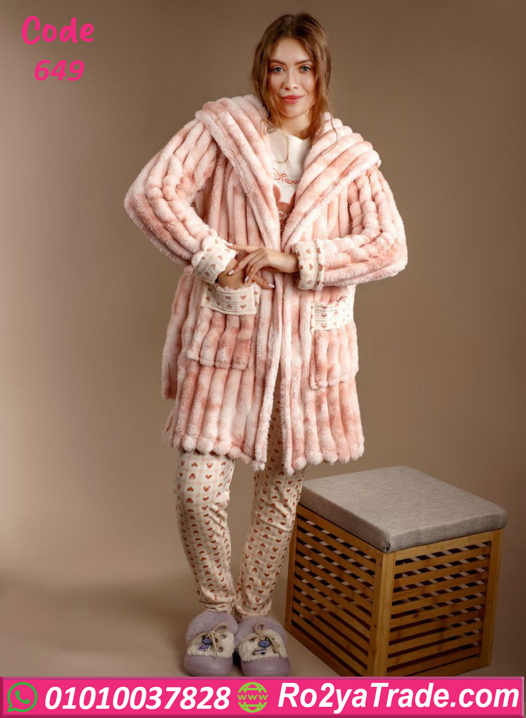 جاكيت فرو ناعم بخامة تقيلة جدا + بيجامة داخلية بنقشة قلوب كيوت