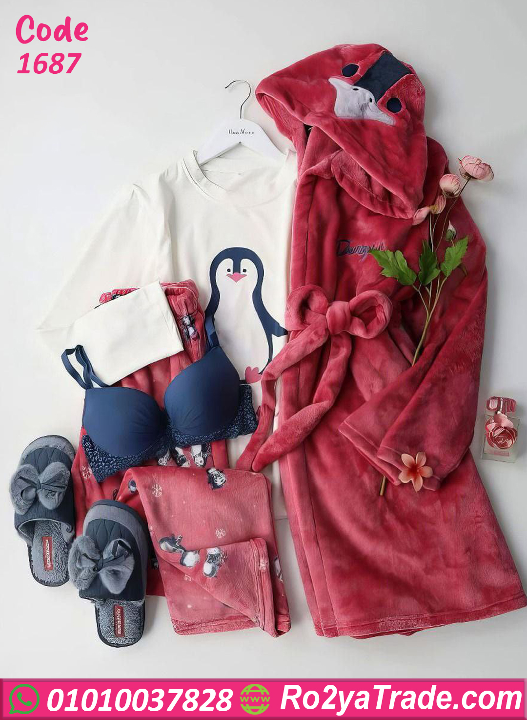 طقم قطيفة شتوي بينجوين بالروب – كود 1687