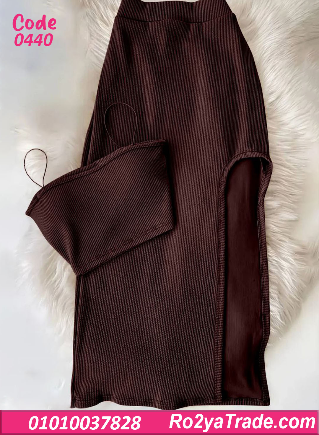 طقم ميني جيب حريمي كود 0440 من ماركة La Rose، تصميم عصري بسيط يبرز جمال القوام بأسلوب راقي ومختلف.