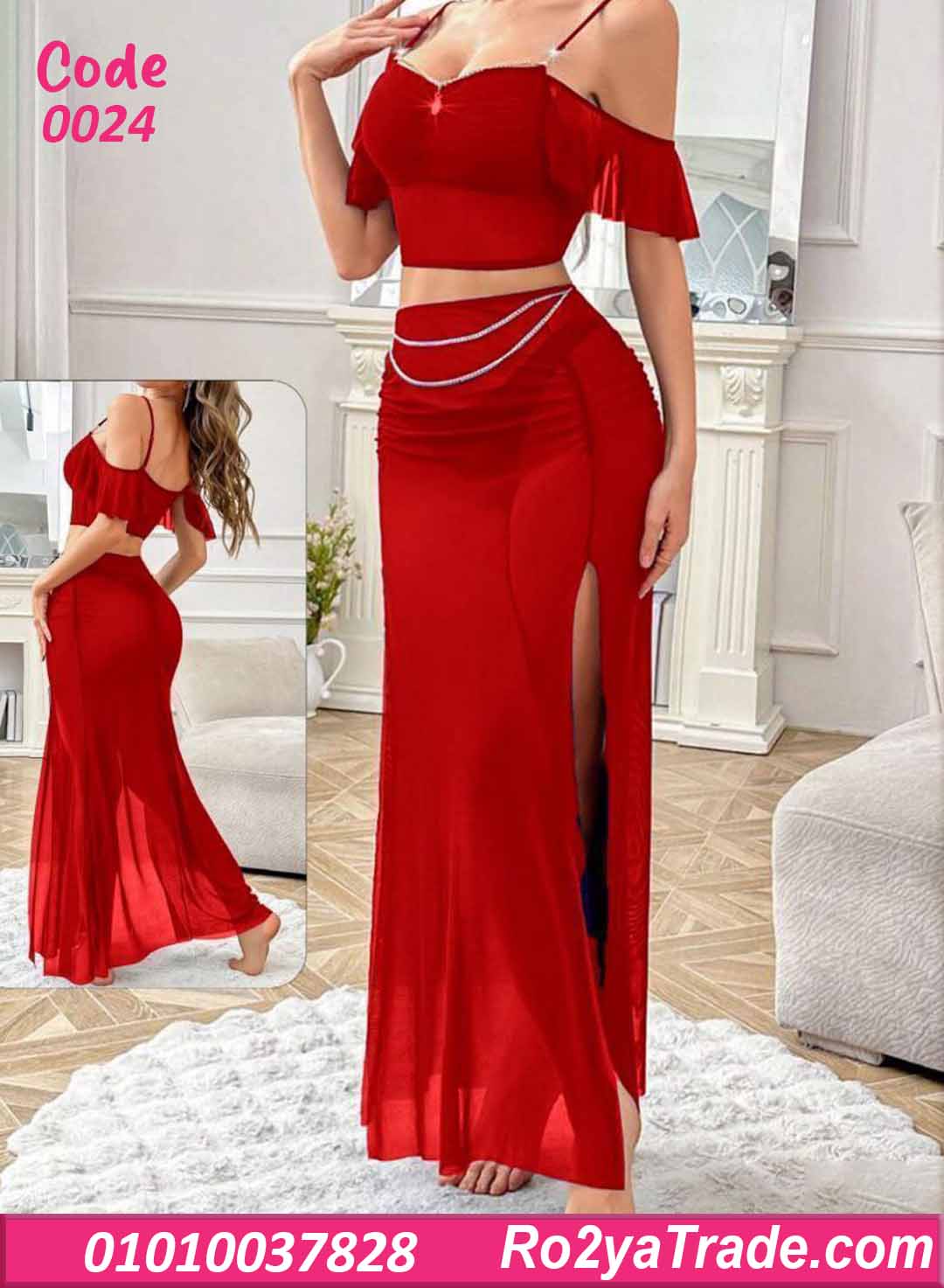 ✨ طقم مكون من (توب قصير + تنورة طويلة شيفون)