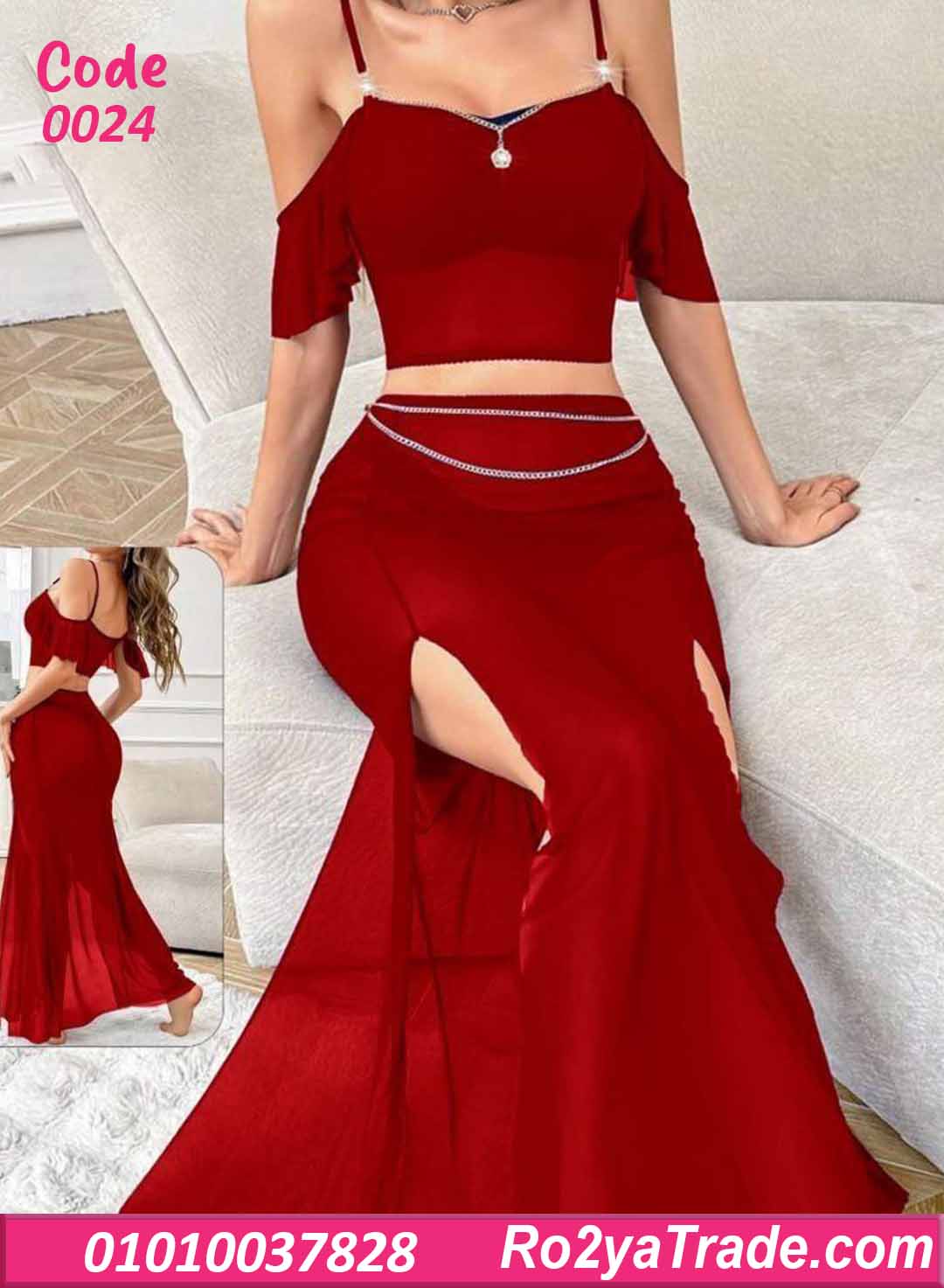 طقم ميني جيب – كود 0024 من ماركة zoom بتصميم راقٍ مكوّن من بلوزة قصيرة بأكتاف مكشوفة وتنورة