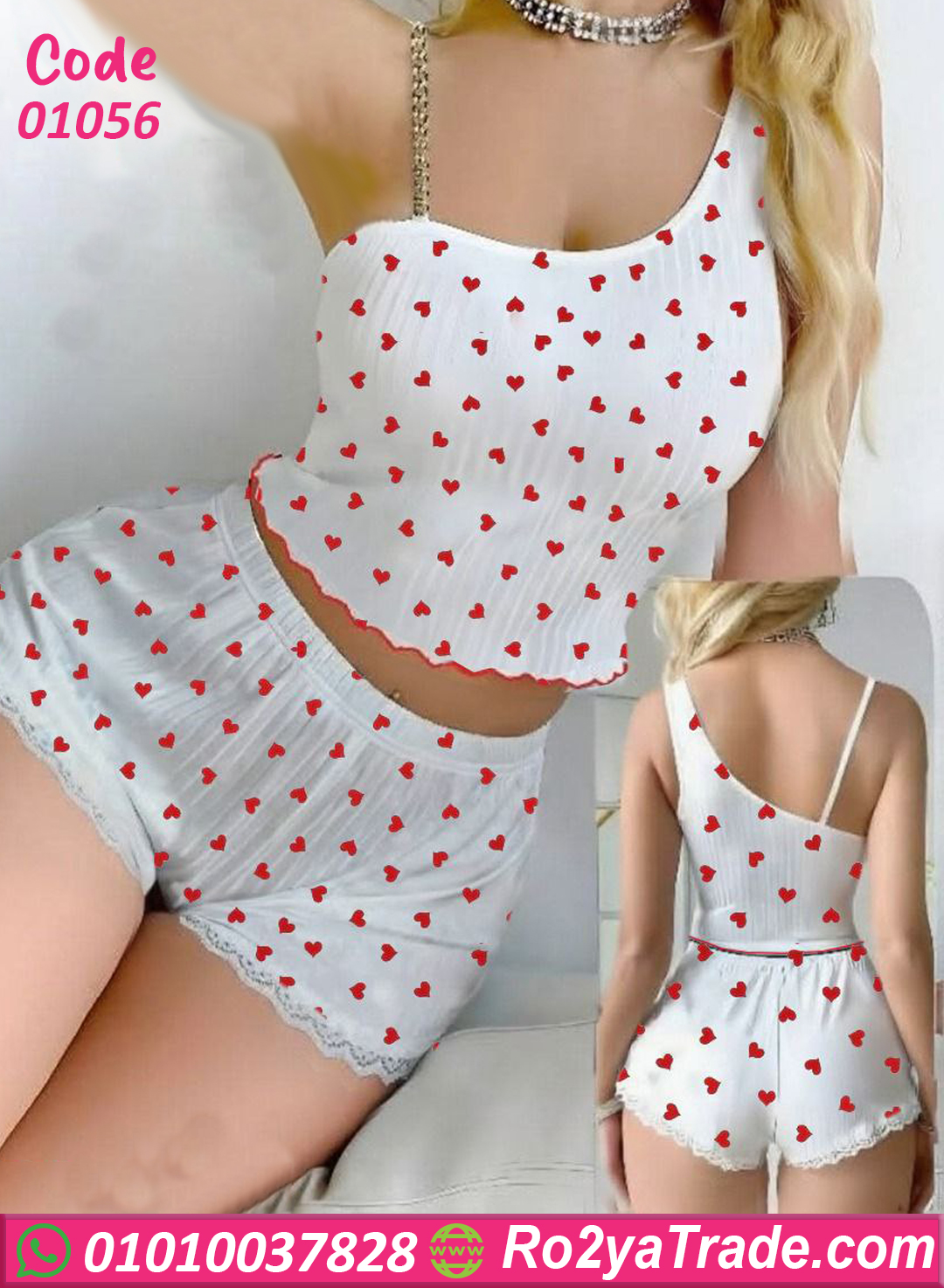 طقم هوت شورت 01056 خامته قطن مريح على الجسم ومناسب لحر الصيف، عملي جدًا ومثالي للبيت أو السهرات اللي في البيت.