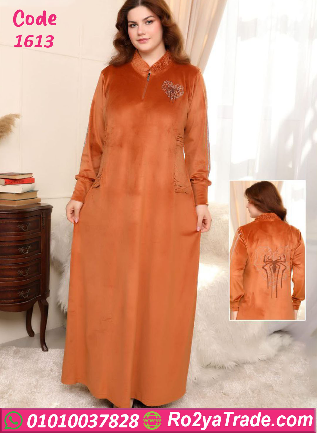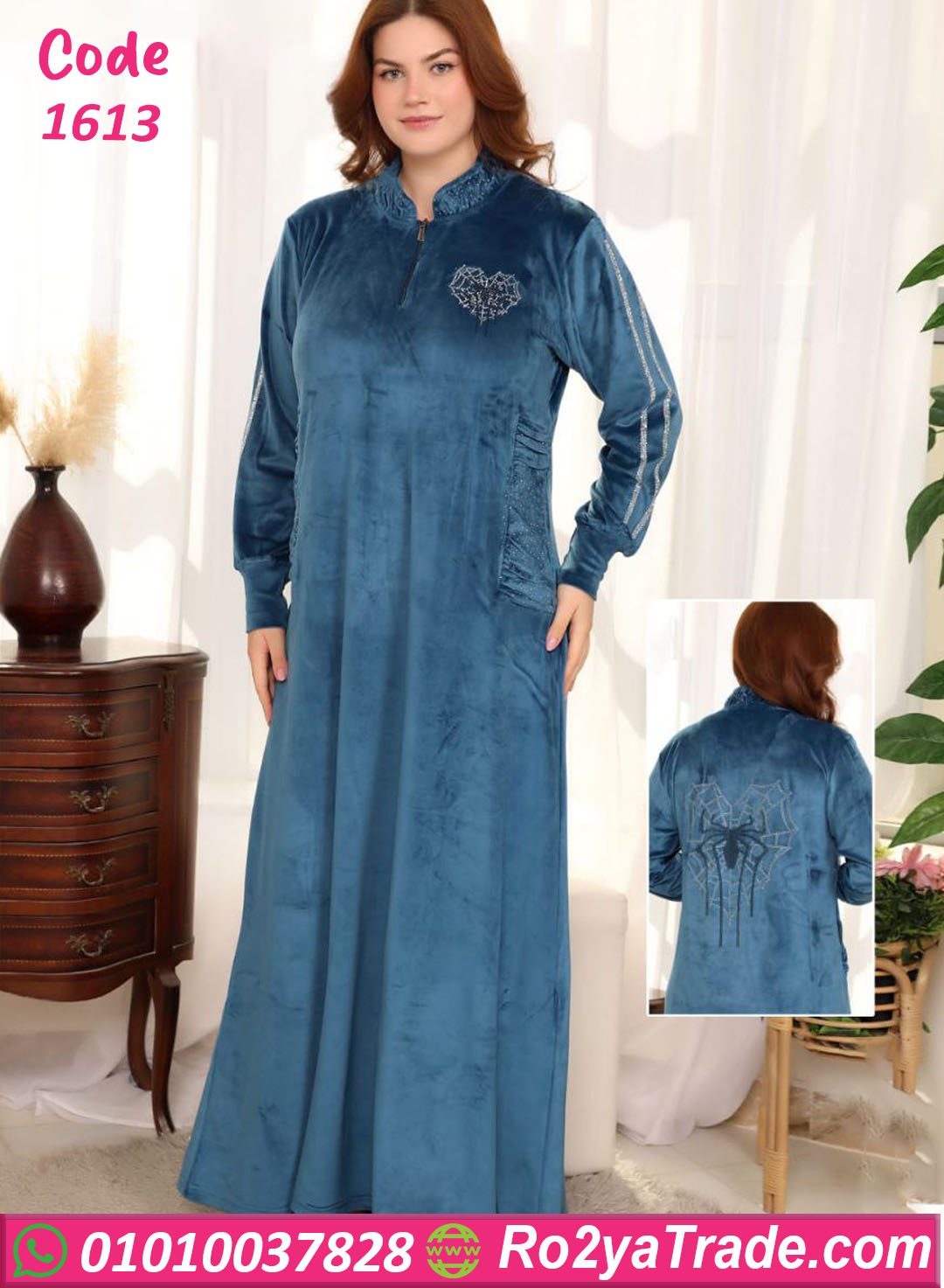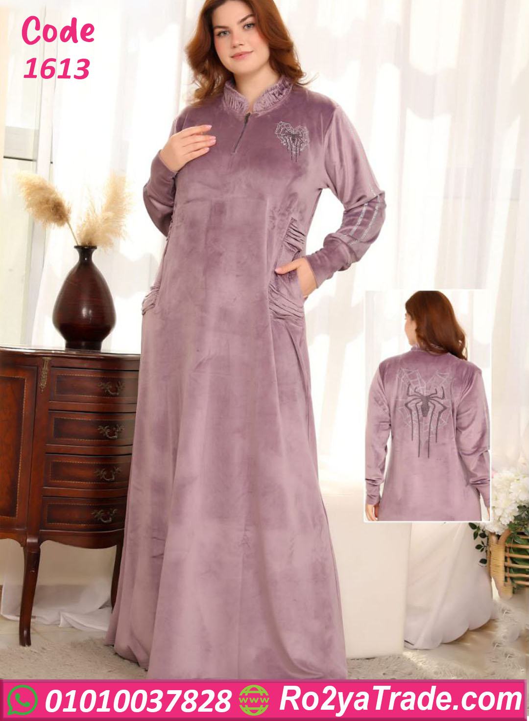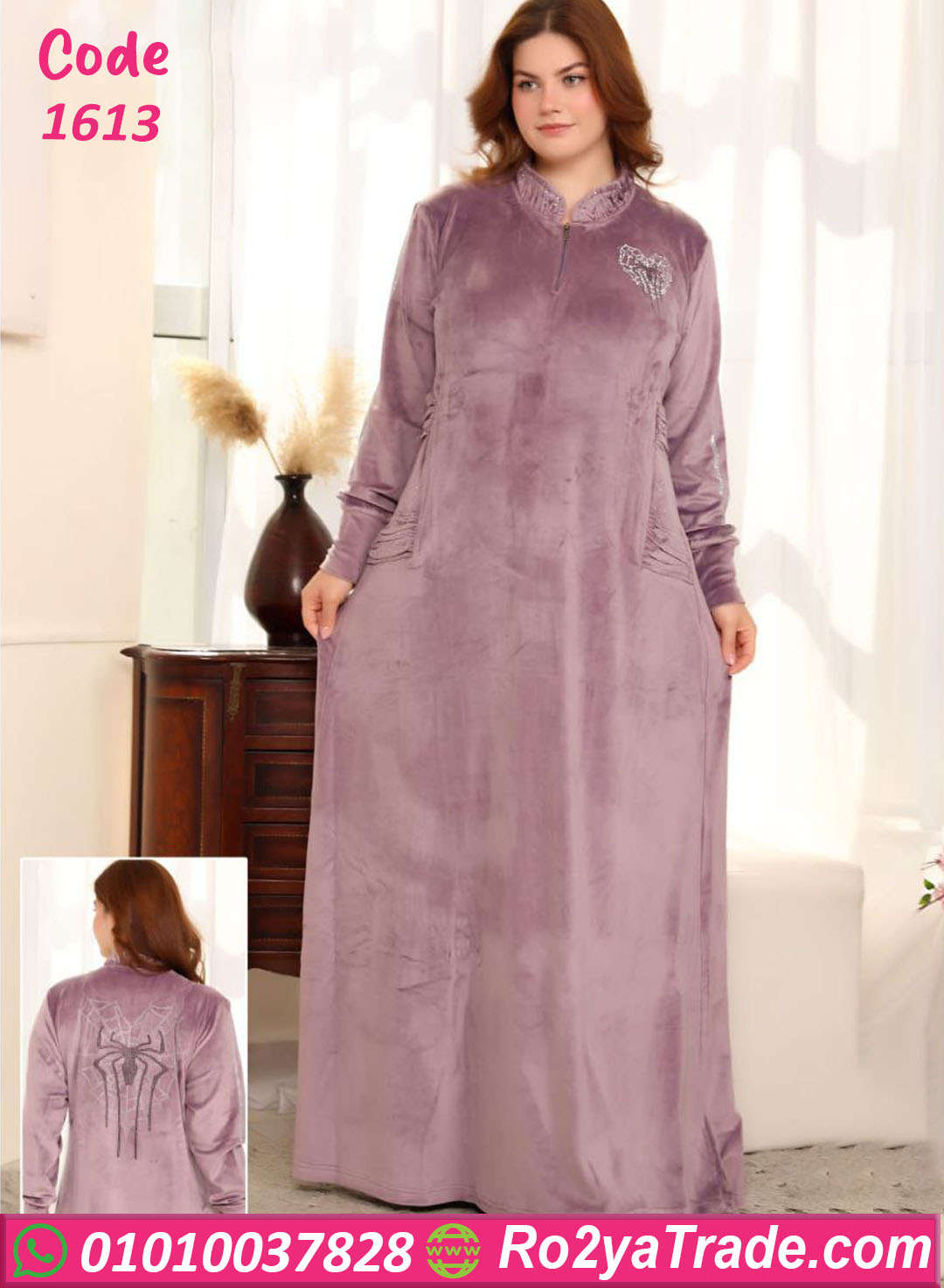 عباية قطيفة ناعمة بتطريز أنيق على الصدر والظهر، مريحة جدًا للبيت ومناسبة للشتا.