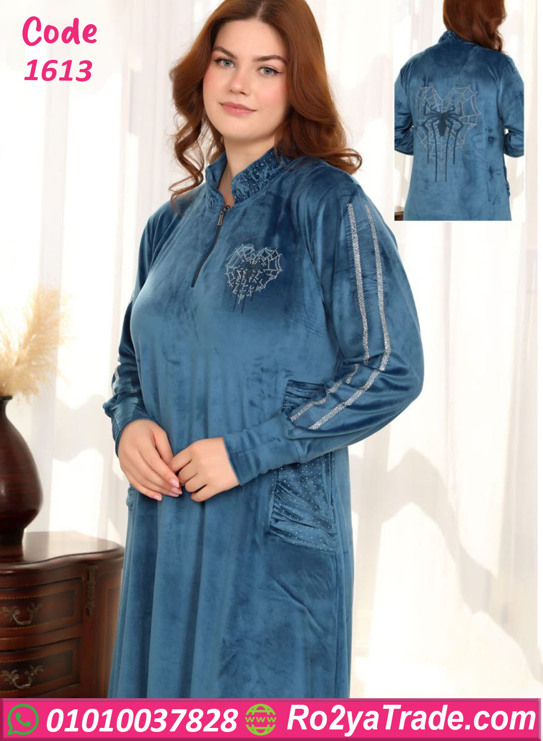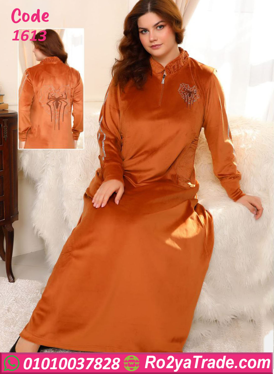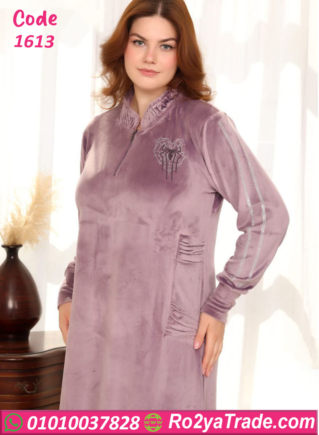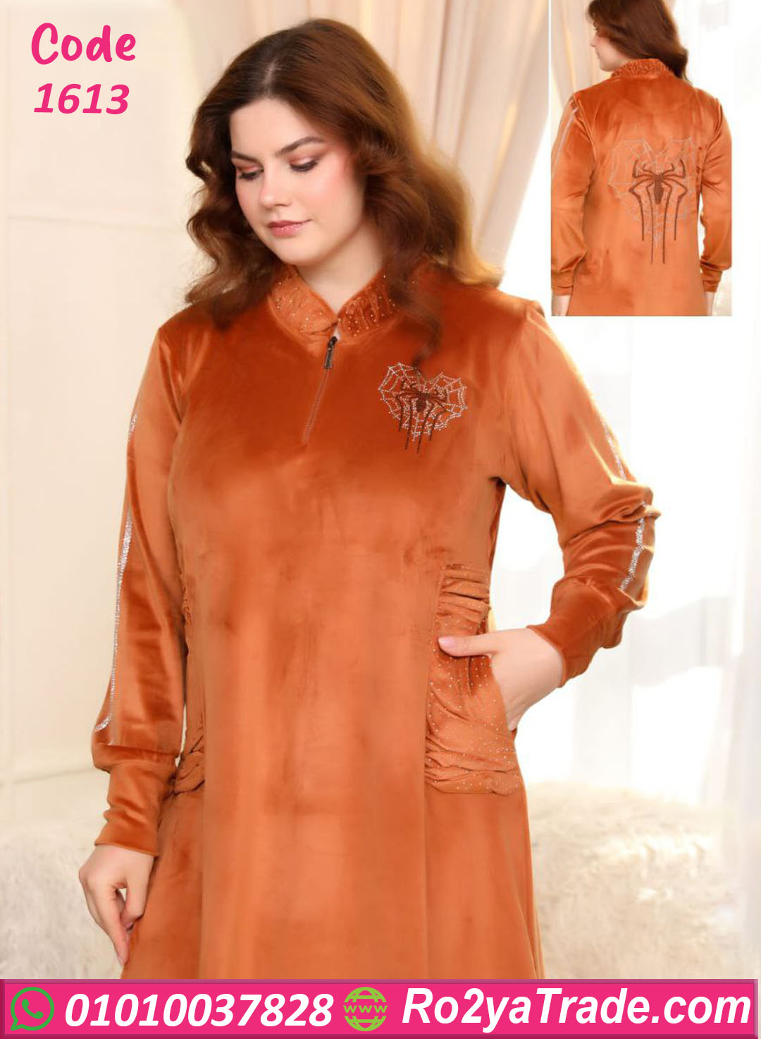 عباية قطيفة ناعمة بتطريز أنيق على الصدر والظهر، مريحة جدًا للبيت ومناسبة للشتا.