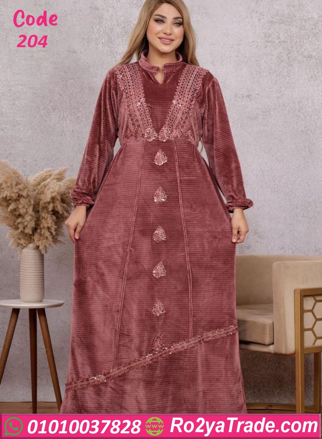 العباية بتتميز بفتحة رقبة صغيرة وأزرار ديكورية من المنتصف تضيف لمسة كلاسيكية شيك. مناسبة جدًا للبيت أو للزيارات العائلية،