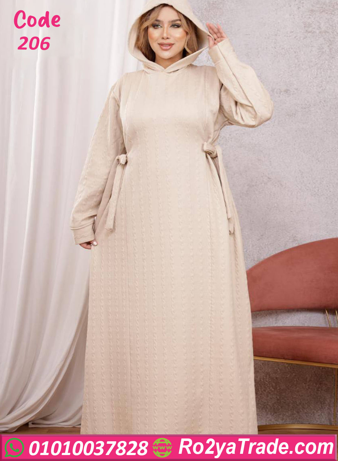 العباية دي من خامة القطيفة الشتوي الفاخر، ناعمة جدًا على الجسم وسميكة تحمي من البرد. التصميم فيها كابيشو شيك جدًا وكمان فيها ربطات جانبية علشان تتحكمي في المقاس على راحتك. الستايل عملي وأنيق في نفس الوقت ، تقدري تلبسيها في البيت أو قدام الضيوف وتديك شياكة غير عادية ✨ القماش ناعم وبيحتفظ بلونه بعد الغسيل، وكمان القصّة بتدي شكل أنثوي جذاب ومريح. متوفرة بألوان هادية مودرن اللي مناسب لكل الأذواق.