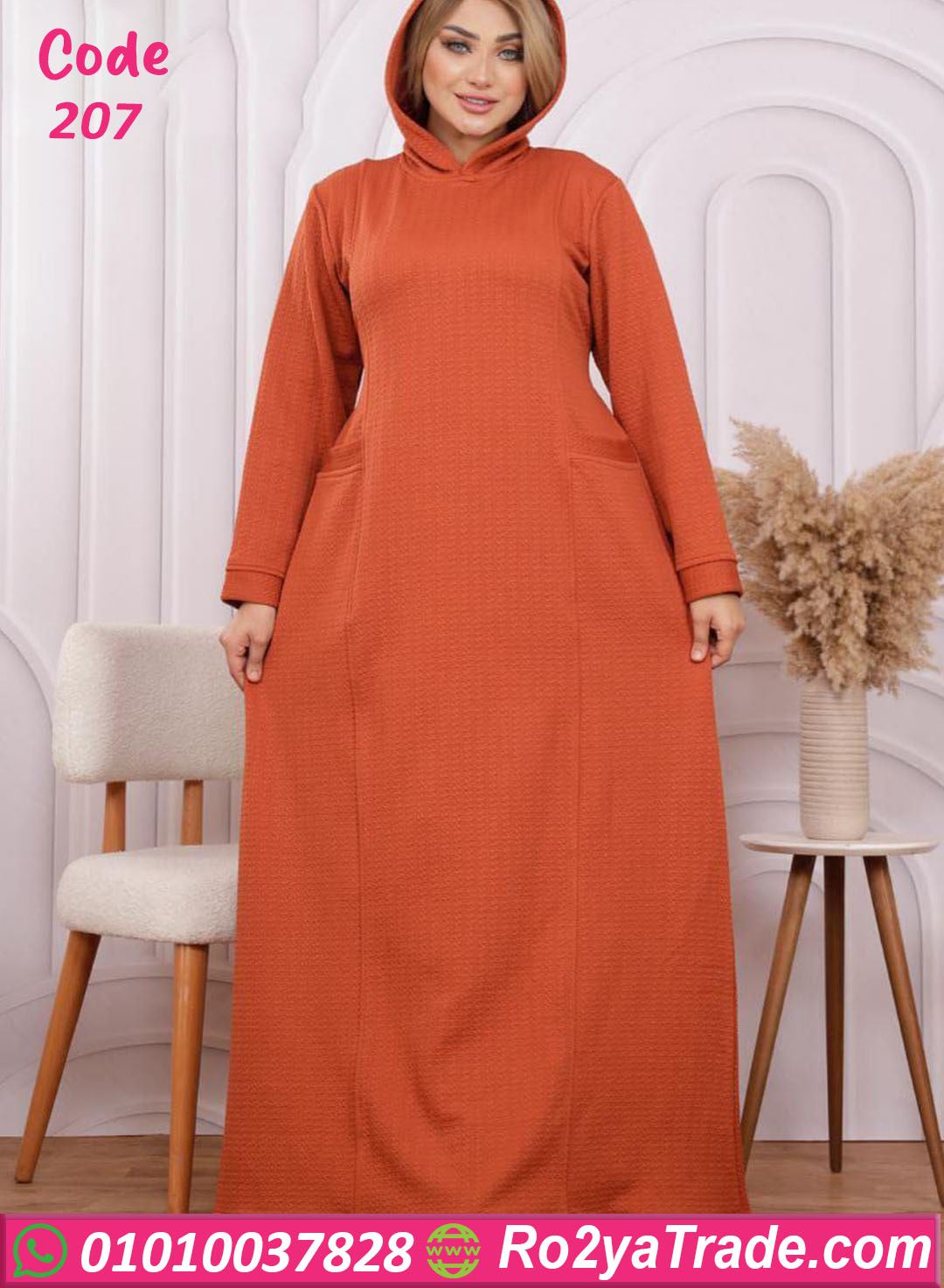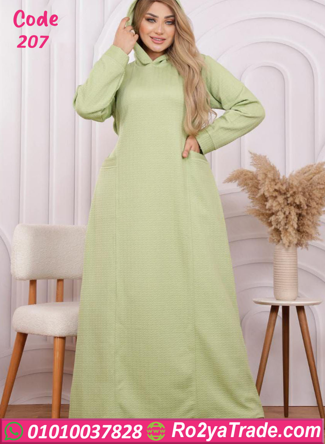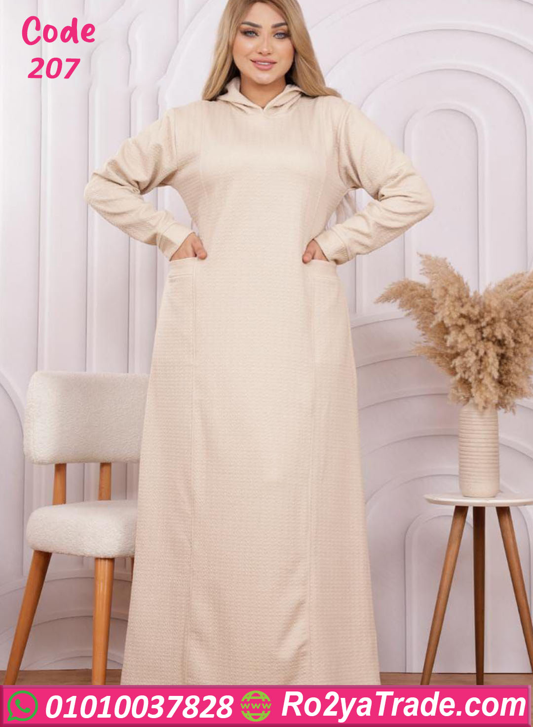 عباية بيت شتوي قطن مبطن ناعم بخامة دافئة جدا ومريحة في اللبس، تصميم عملي مع كابيشو وجيوب جانبية،