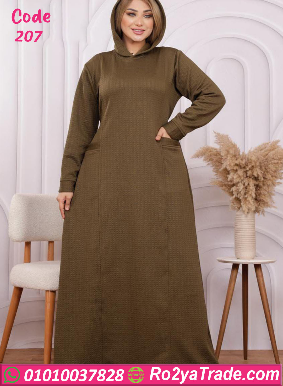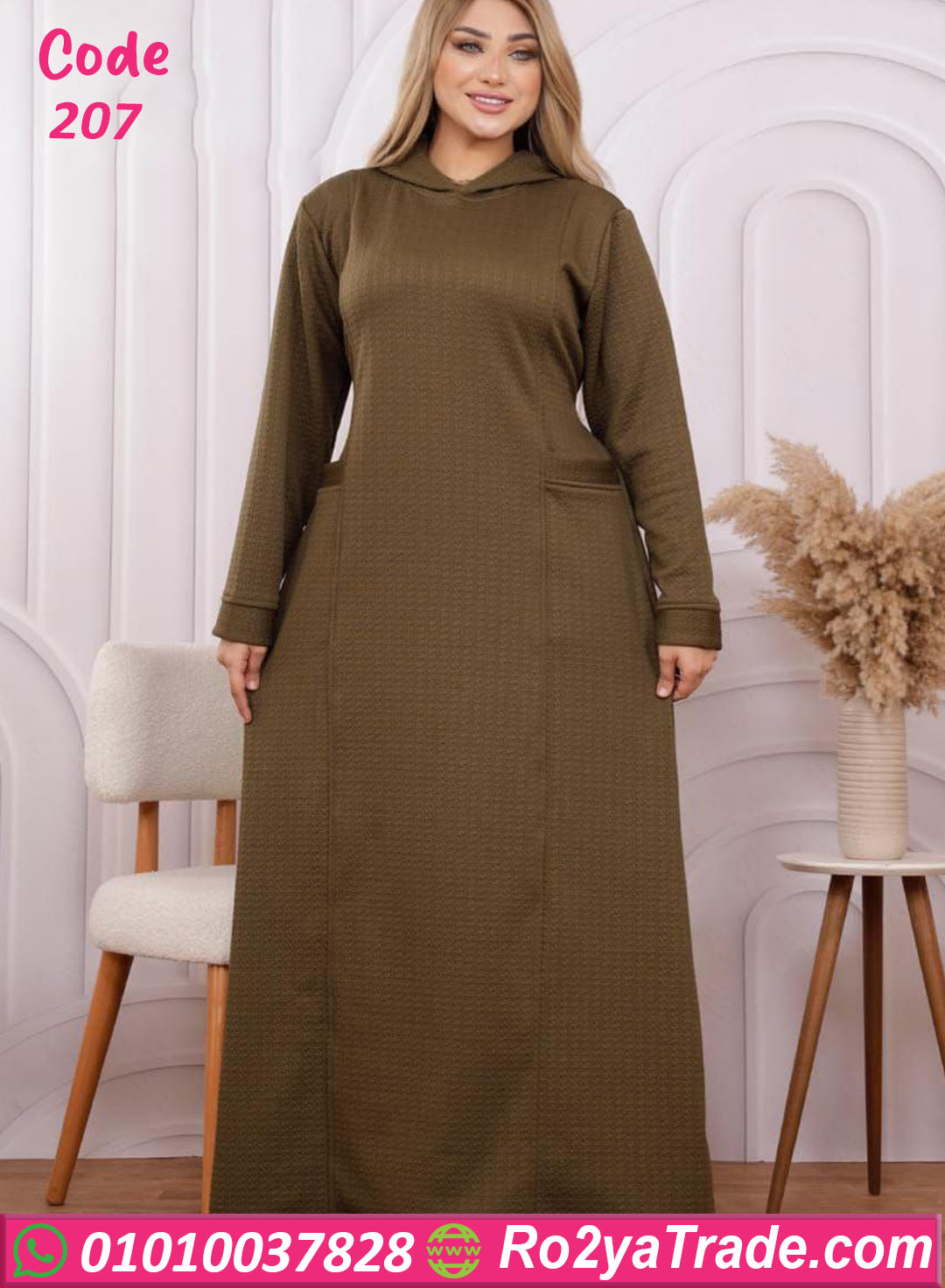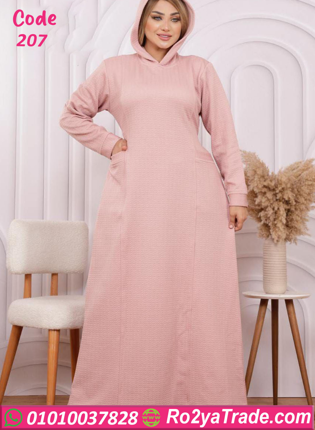 عباية بيت شتوي قطن مبطن ناعم بخامة دافئة جدا ومريحة في اللبس، تصميم عملي مع كابيشو وجيوب جانبية،