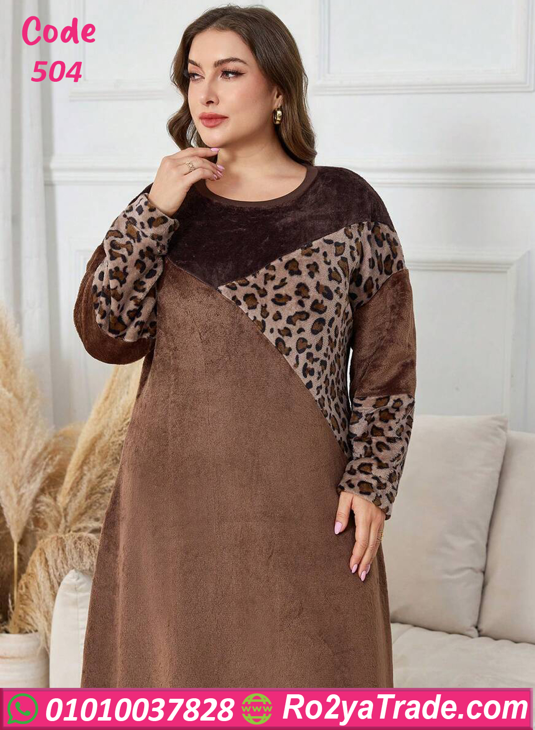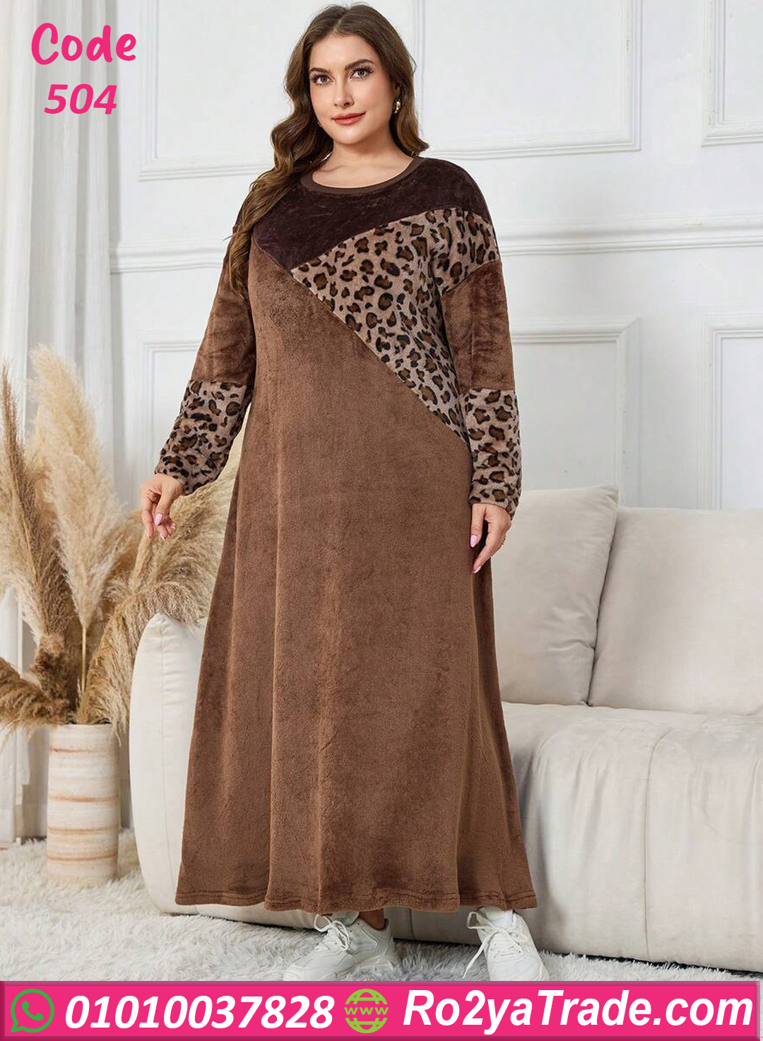 عباية بيت شتوي خامة ناعمة ودافئة بنقشة تايجر أنيقة