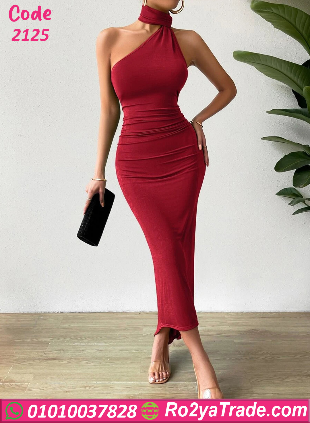 ليمنحك إطلالة جذابة في مختلف المناسبات. يتميز الفستان بتصميم ياقة هالتر ملفوفة حول الرقبة تضيف لمسة عصرية