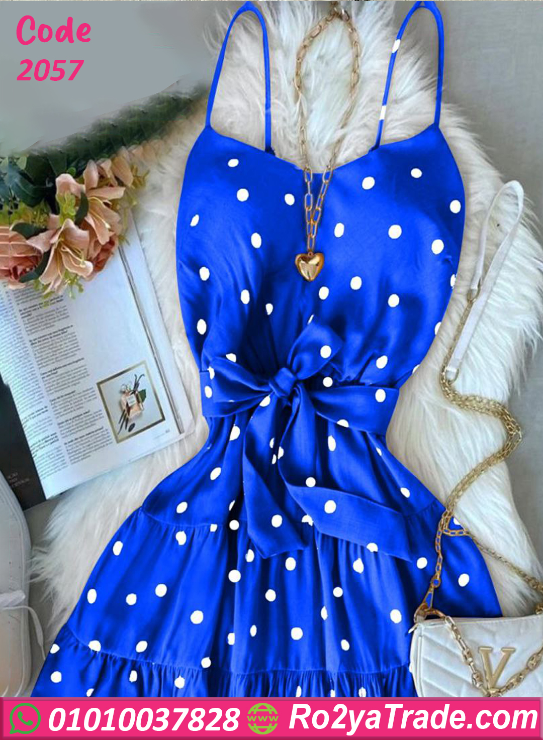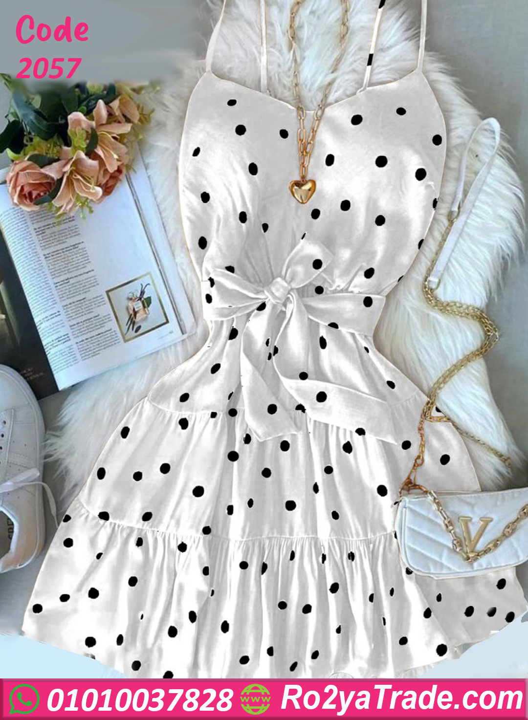 فستان بولكا دوت ليكرا ناعم – كود 2057