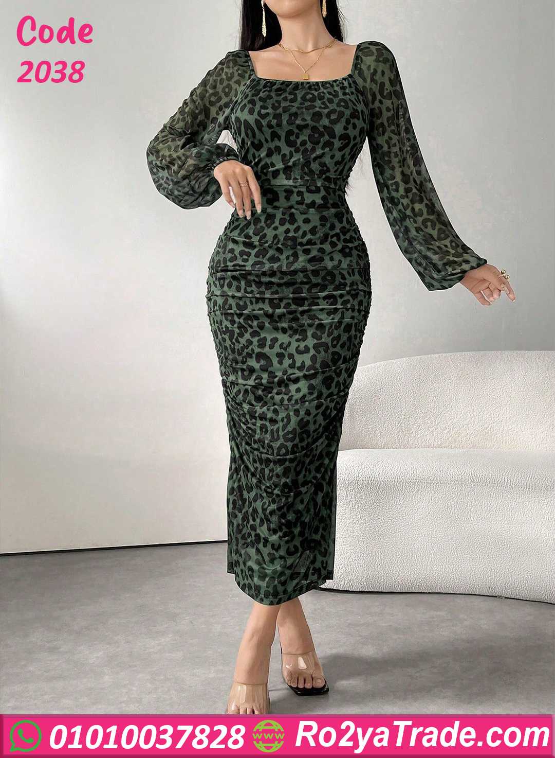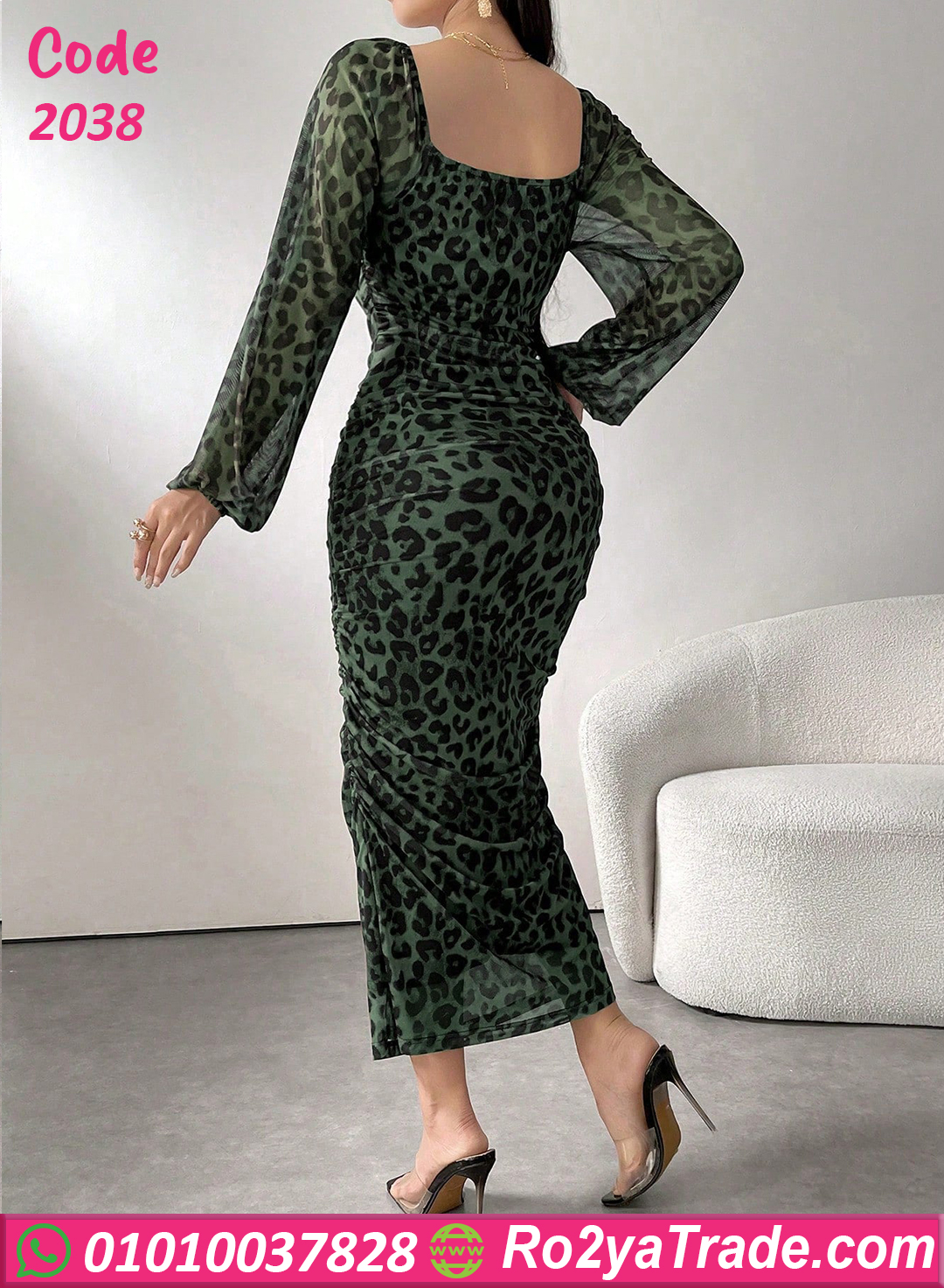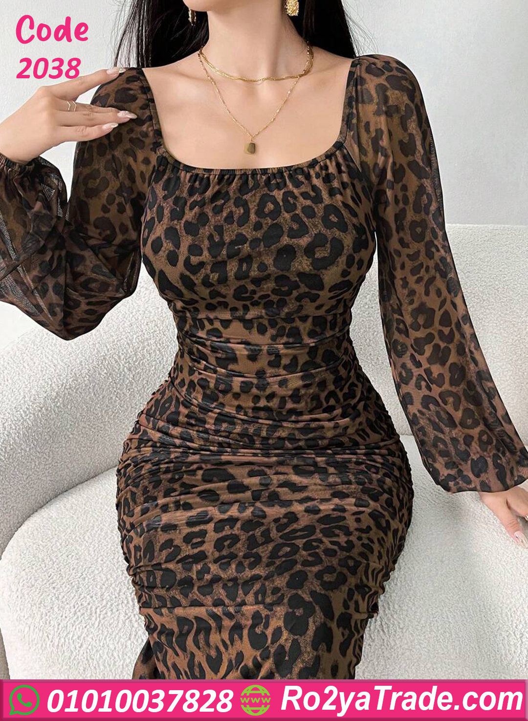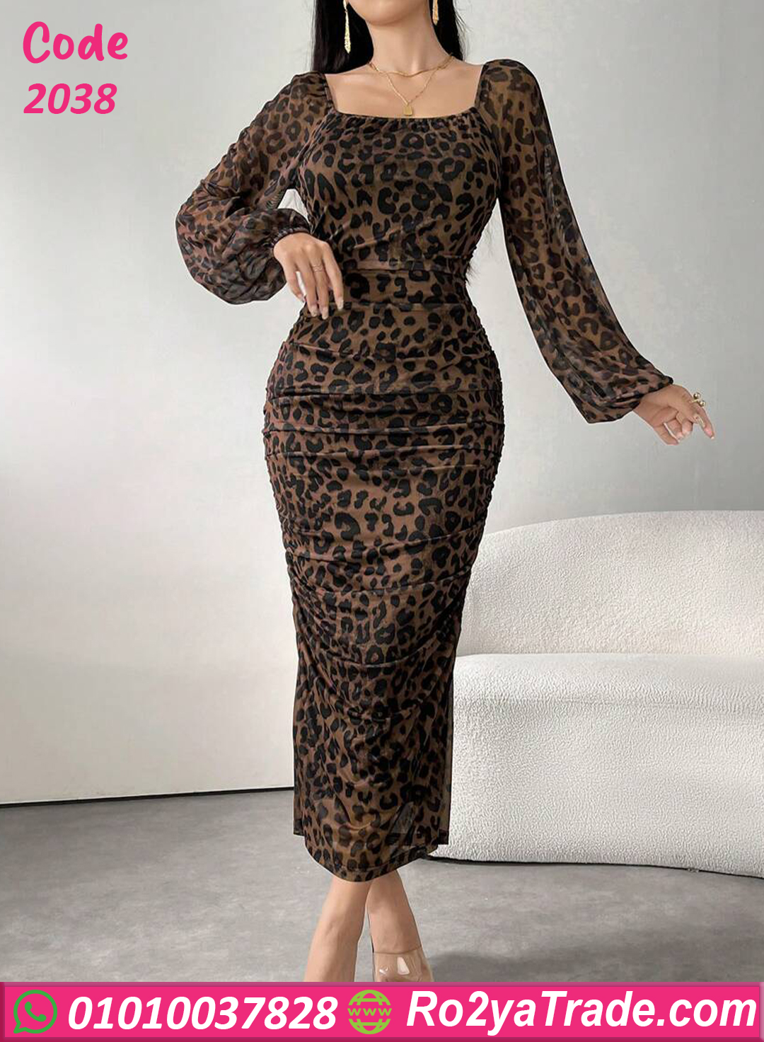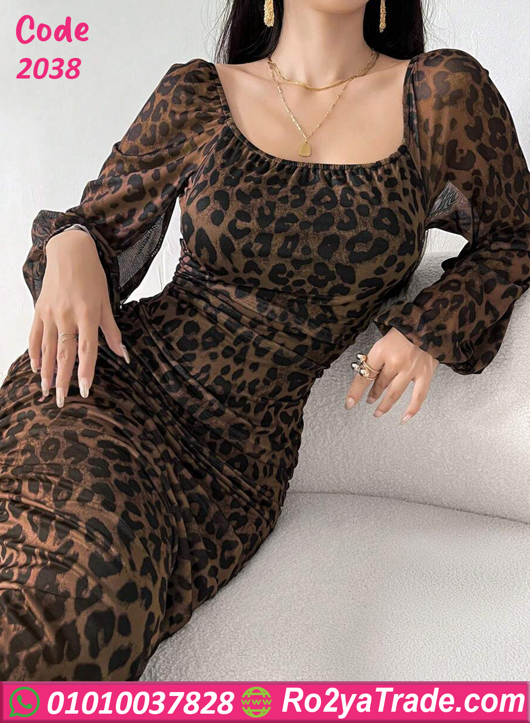 فستان تايجر بأكمام شيفون طويلة – كود 2038