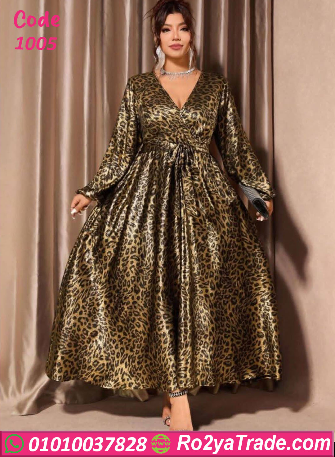 فستان طويل ستايل تايجر فخم بخامة لامعة ناعمة، قصّة أنيقة بتدي شكل شيك ومميز،