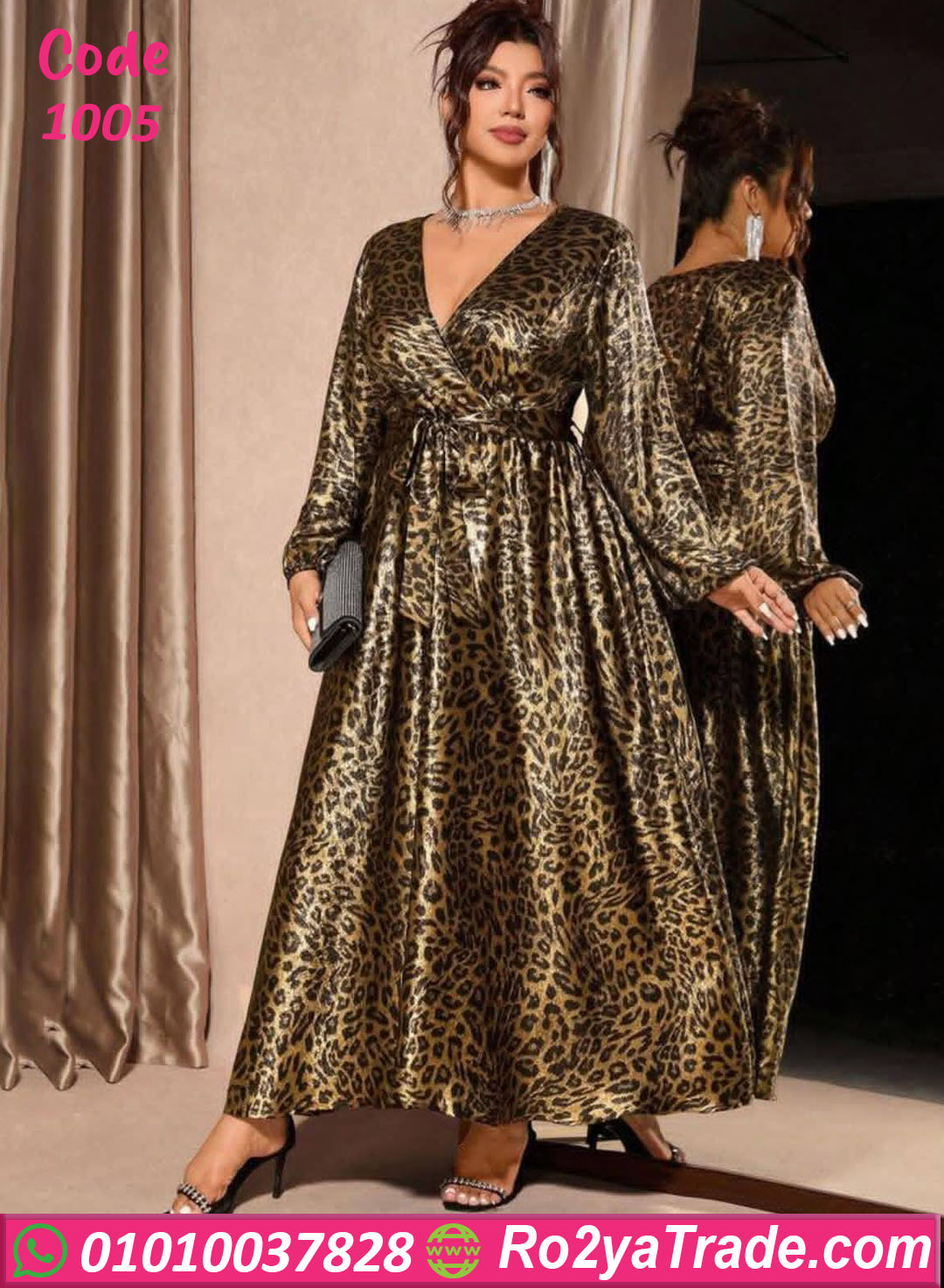 فستان صيفي طويل بتصميم تايجر جذاب مناسب للسهرات أو الخروجات الخاصة، بخامة ناعمة خفيفة ولامعة بتدي لمسة أنوثة وثقة في كل حركة. الموديل بقصة لف من الأمام برباط في الوسط لتحديد الخصر وإبراز الجسم بشكل أنثوي، مع كم طويل واسع يديك راحة وأناقة في نفس الوقت. تصميم الفستان يدمج بين الجاذبية والراحة في قطعة واحدة، مثالي للمناسبات أو حتى كستايل شيك في البيت. الخامة عملية وسهلة التنظيف، بتفضل محافظة على شكلها ولمعتها بعد الغسيل.