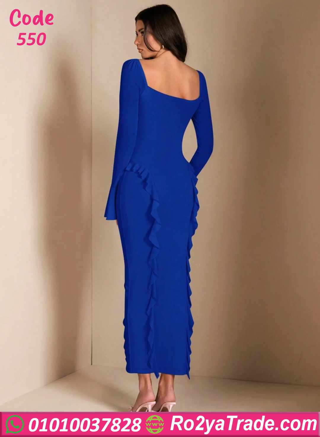 فستان ناعم وشيك جدًا بخامة ليكرا مطّاط مريحة، تصميم أوف شولدر بوردة من الصدر ولمسة كشكشة على الجوانب بتدي جسمك انسيابية وجاذبية 💙