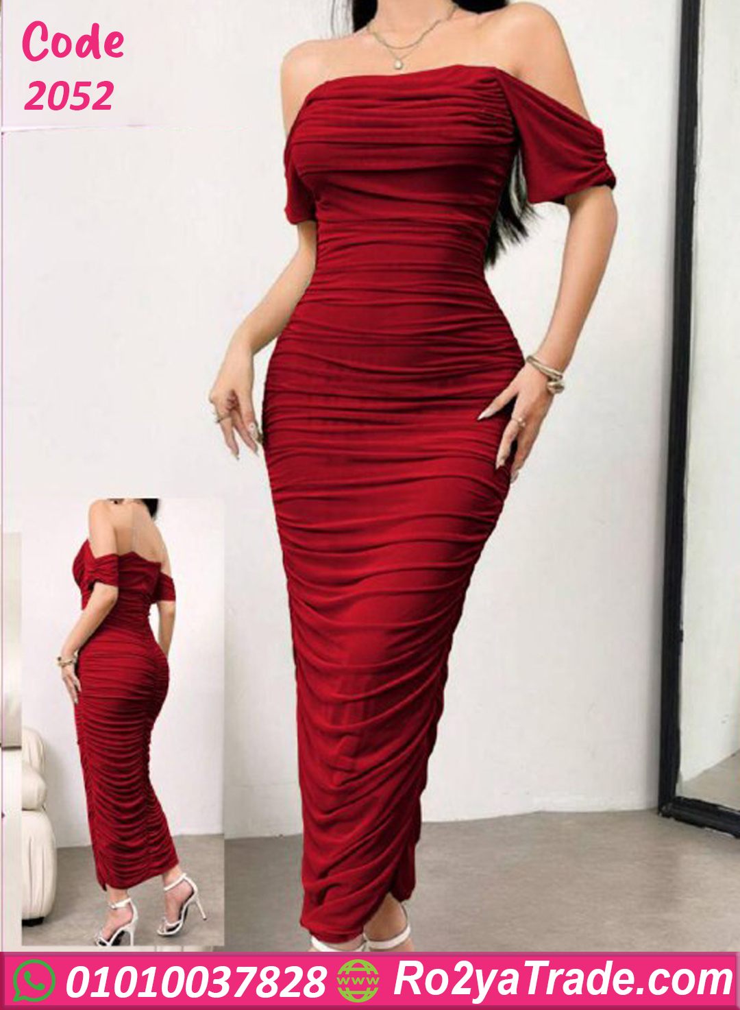 فستان سواريه أوف شولدر مجسم – كود 2052