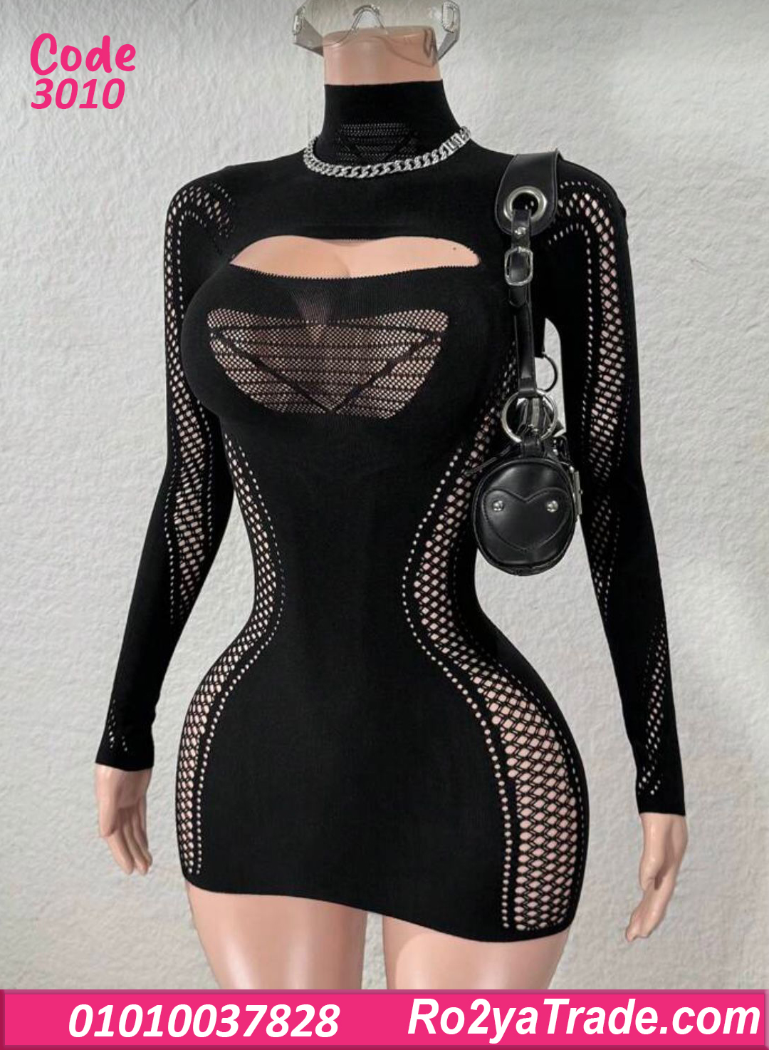 فستان شبك أسود سكسي – كود 3010