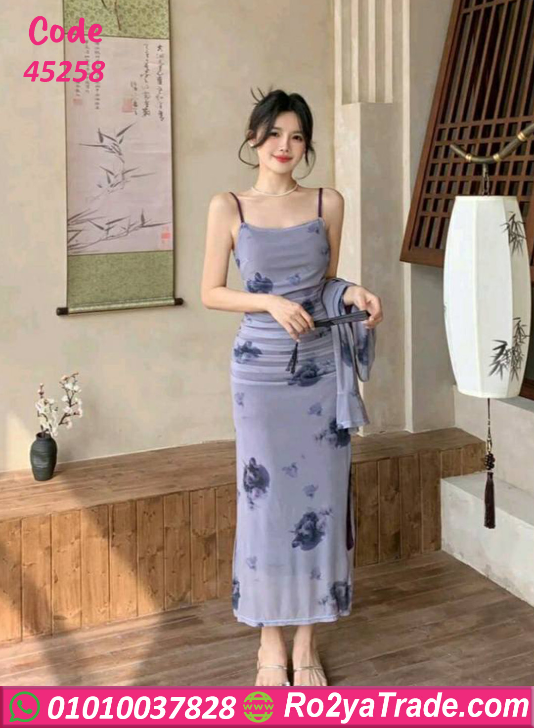 فستان صيفي طويل بطبعة ورد – كود 45258