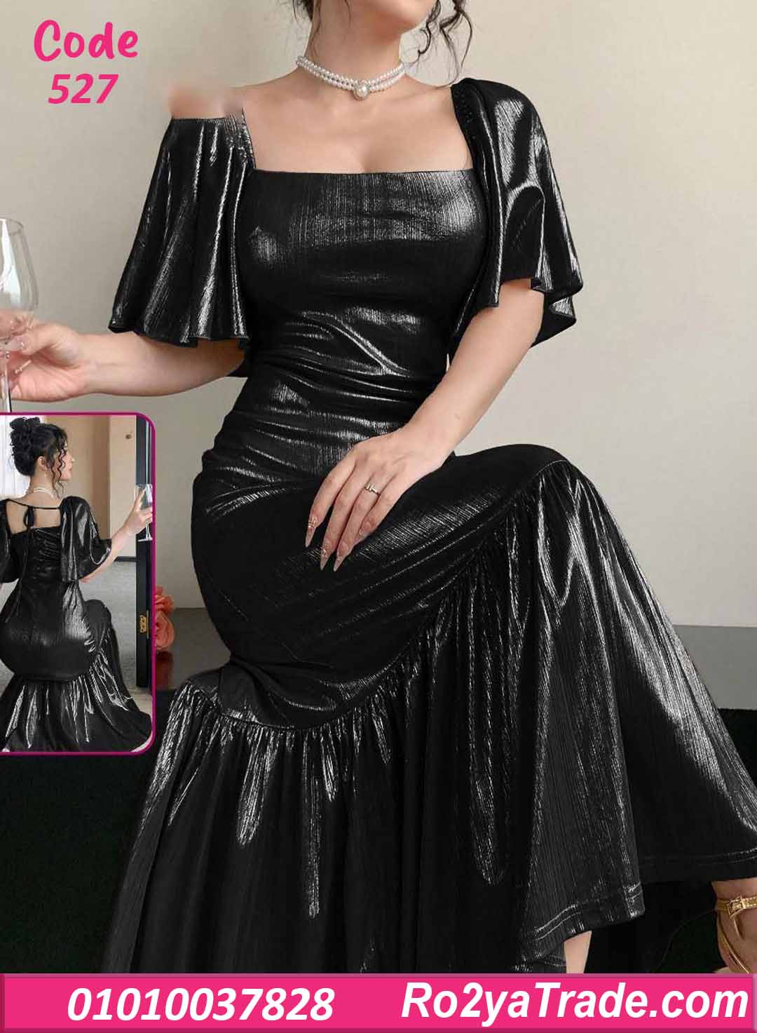 فستان أسود لامع بتصميم أنيق يخطف الأنظار ويخلي حضورك مختلف في أي مناسبة ✨🖤