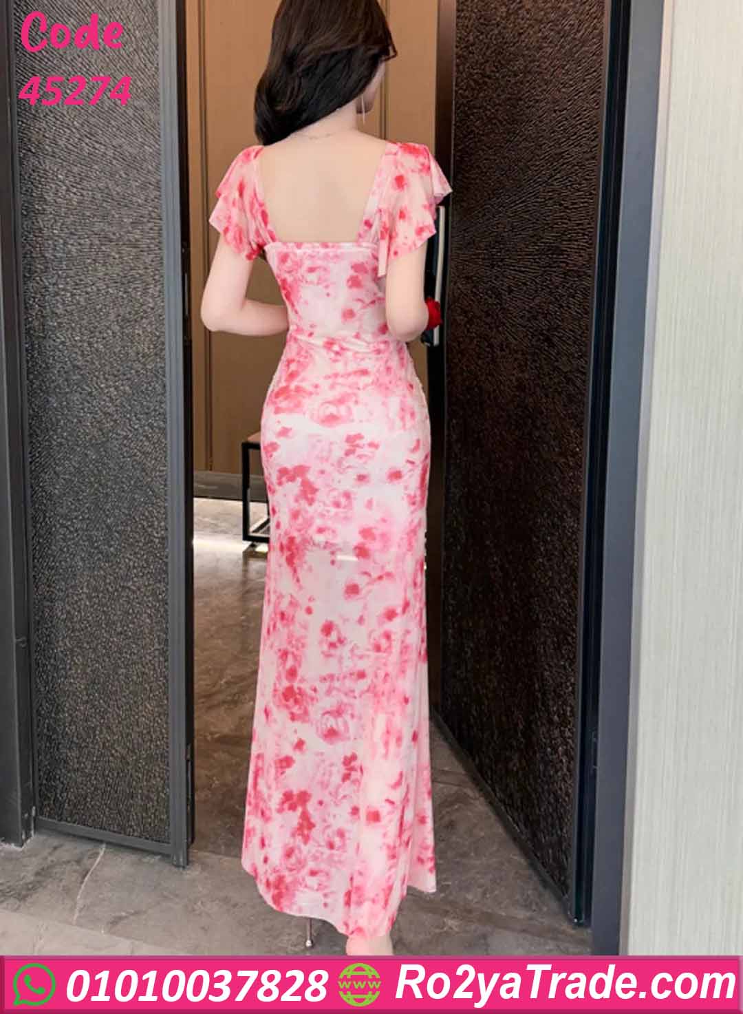 فستان صيفي طويل ورد بفتحة جانبية – كود 45274