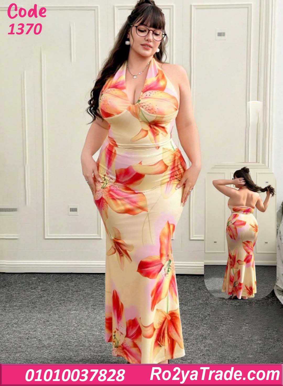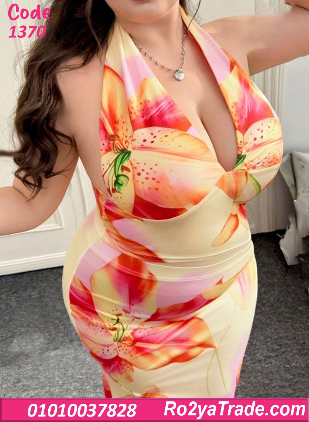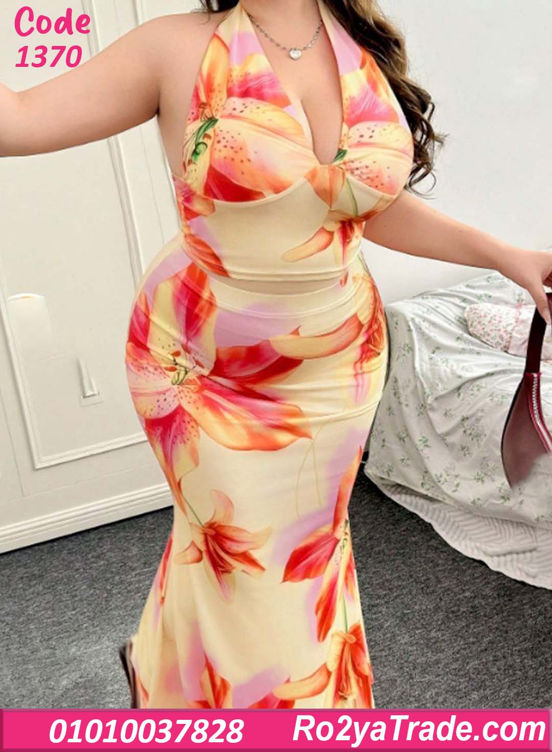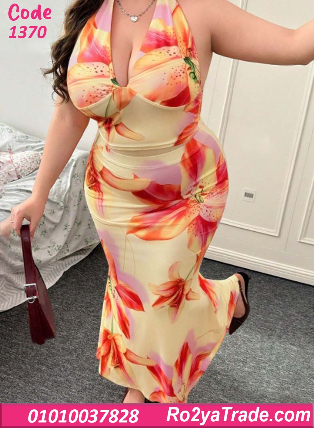 فستان حريمي صيفي طويل بتصميم أنيق يناسب الإطلالات اليومية والمشاوير الصيفية. يتميز بنقشة زهور كبيرة بألوان مشرقة تضيف لمسة حيوية للتصميم مع قصة ضيقة على الجسم تبرز جمال القوام بشكل أنثوي جذاب. كما يأتي بياقة هالتر أنيقة تعطي مظهر عصري مميز وتبرز جمال الكتفين. الخامة ناعمة وخفيفة على البشرة مما يوفر راحة أثناء الارتداء ويجعله مثالي للأيام الصيفية والرحلات والمشاوير.