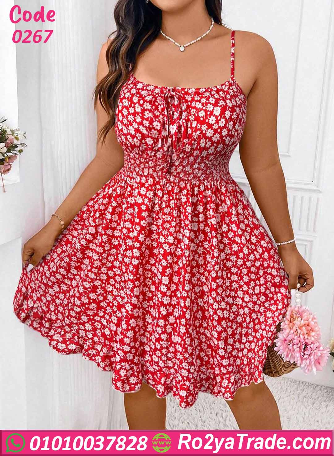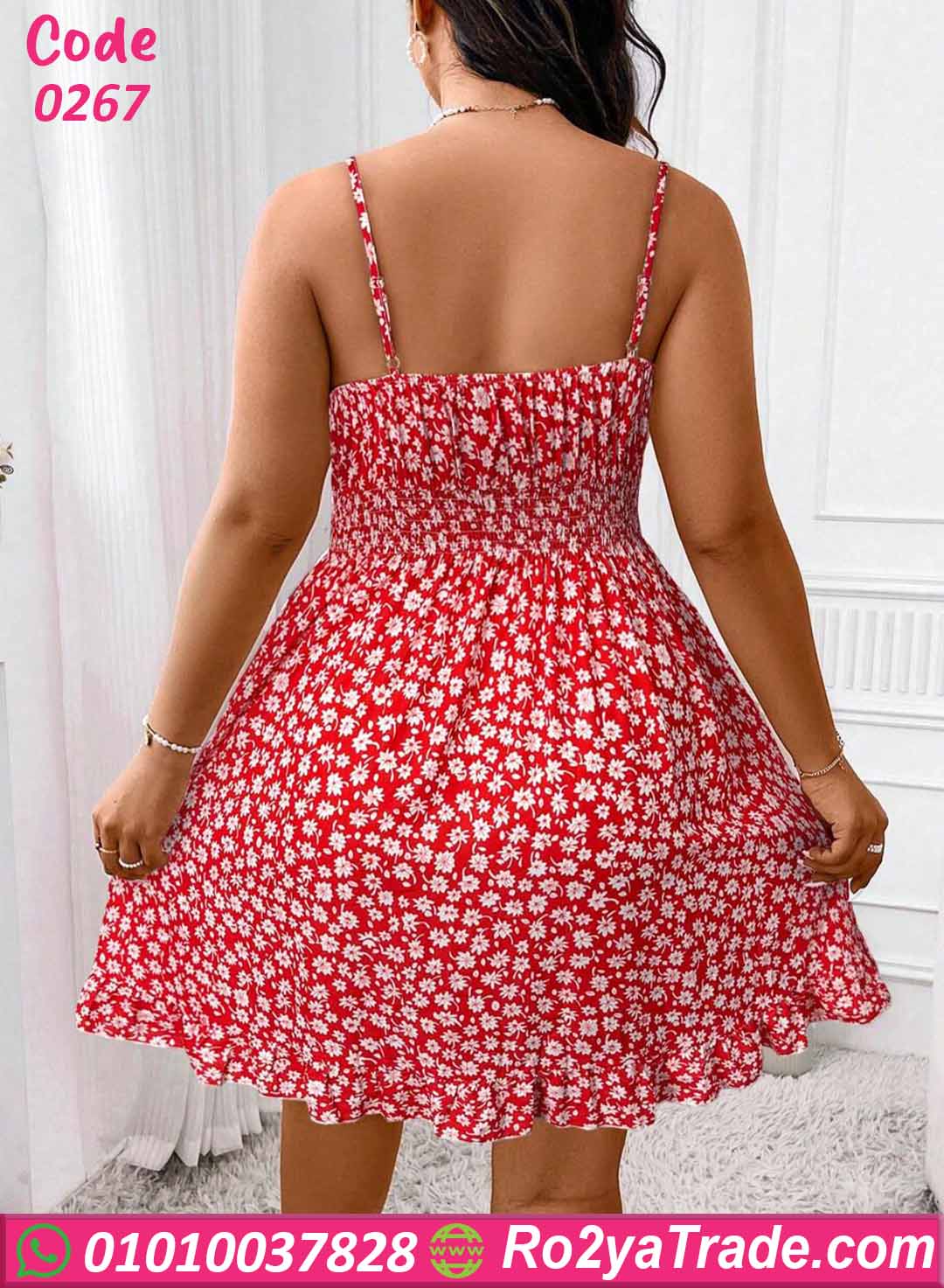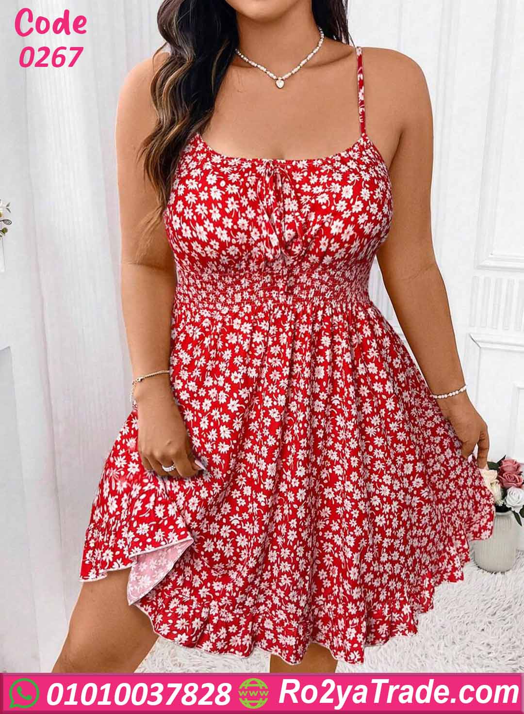 فستان صيفي قصير بنقشة ورد أنيقة – كود 0267