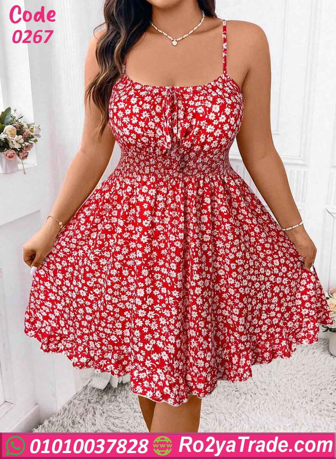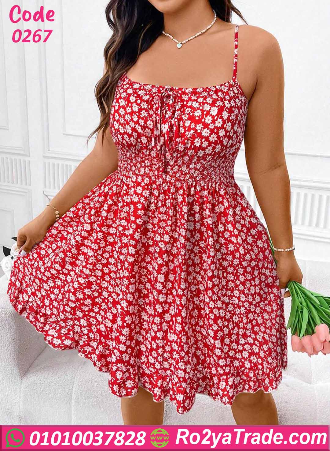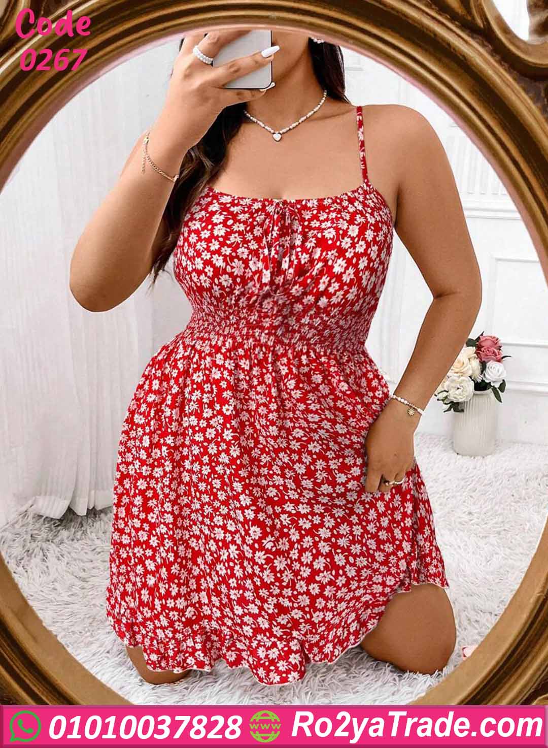 فستان صيفي قصير بنقشة ورد أنيقة – كود 0267