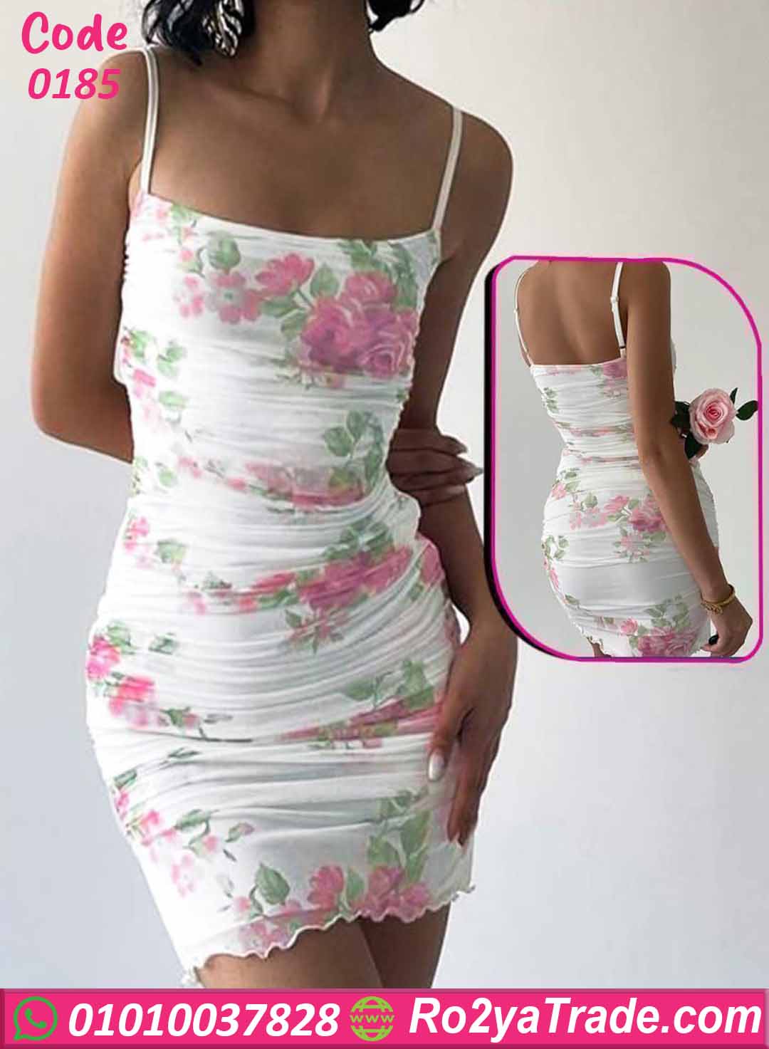 فستان صيفي قصير حريمي بنقشة ورد – كود 0185