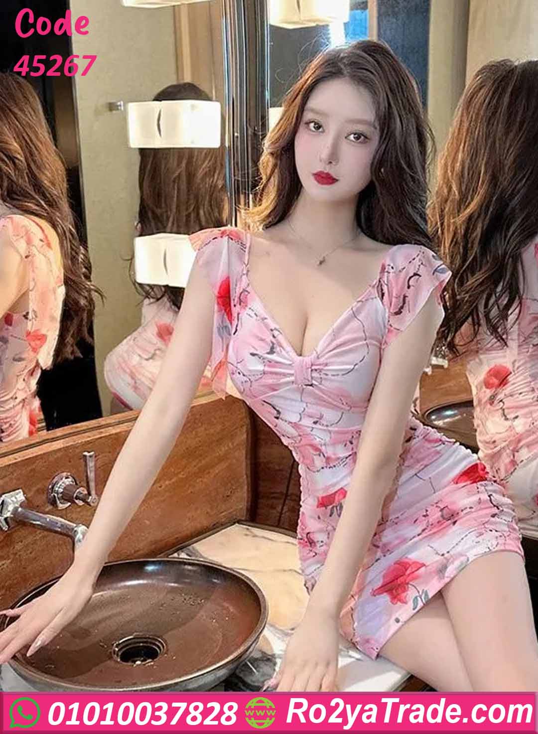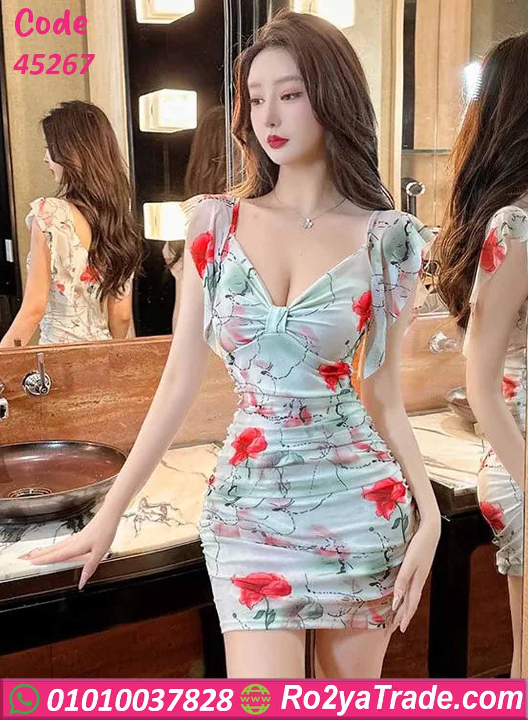 فستان صيفي قصير ورد كاجوال شيك – كود 45267