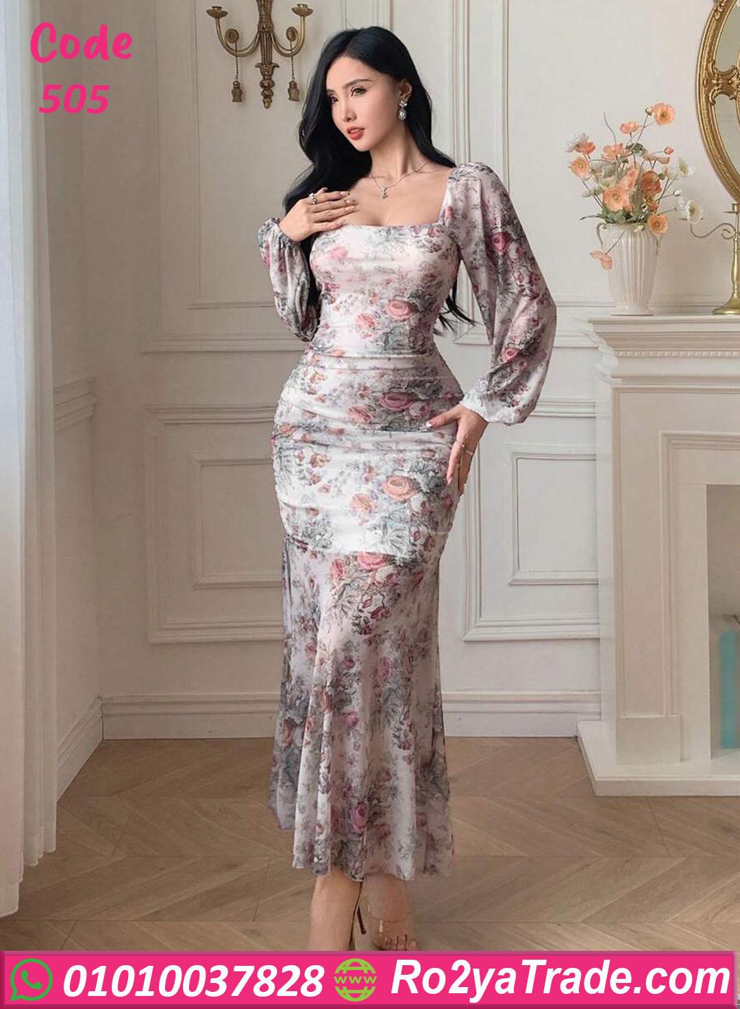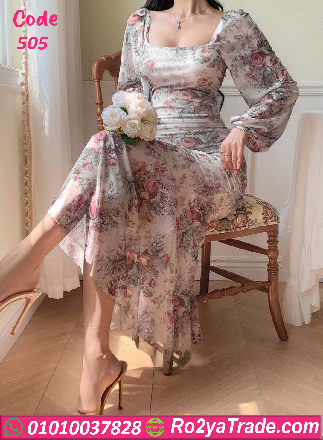 فستان أنيق بخامة ناعمة مشجرة بالورود وأكمام طويلة منفوشة، بيجمع بين الرقة والأنوثة 💕