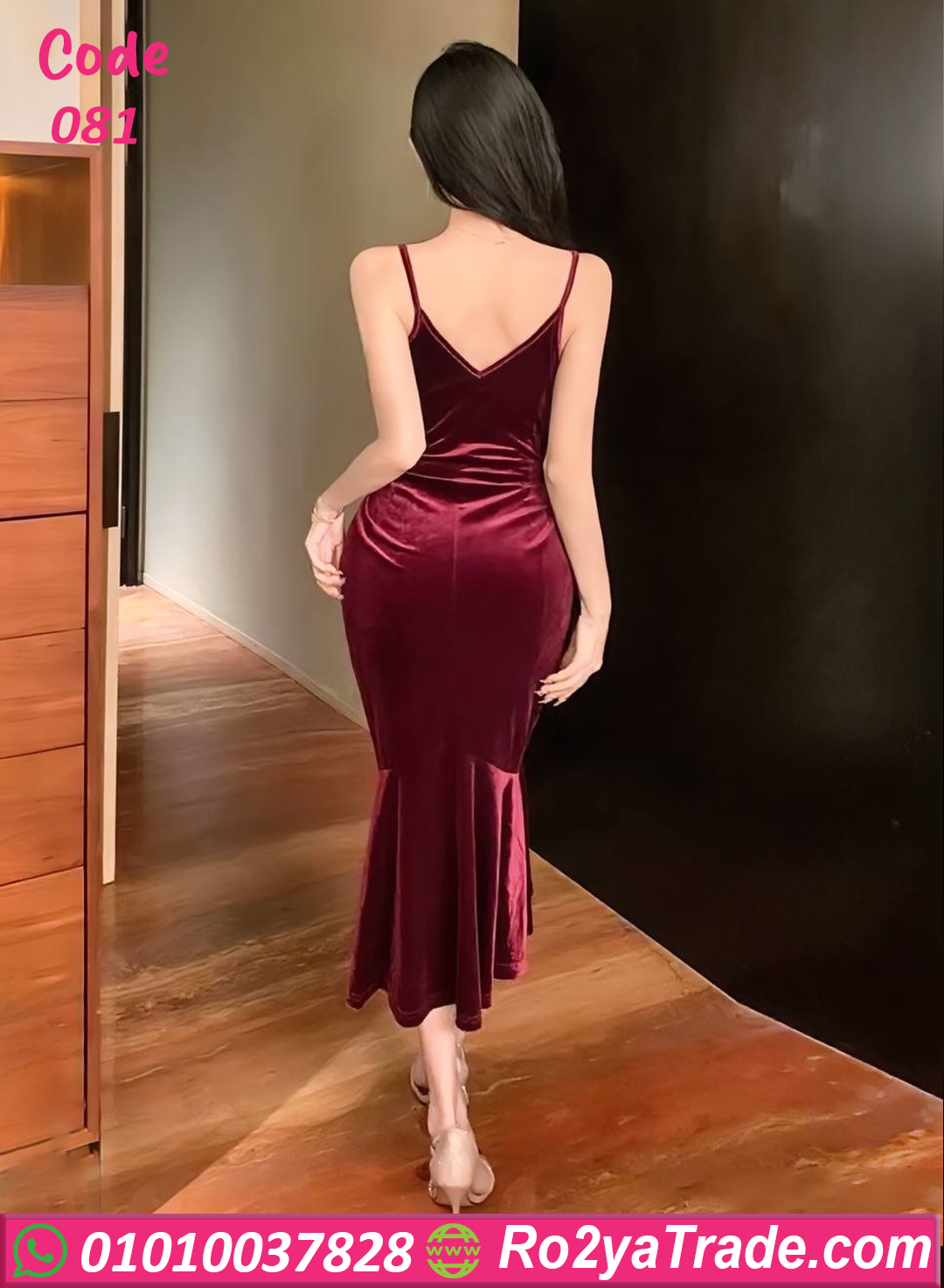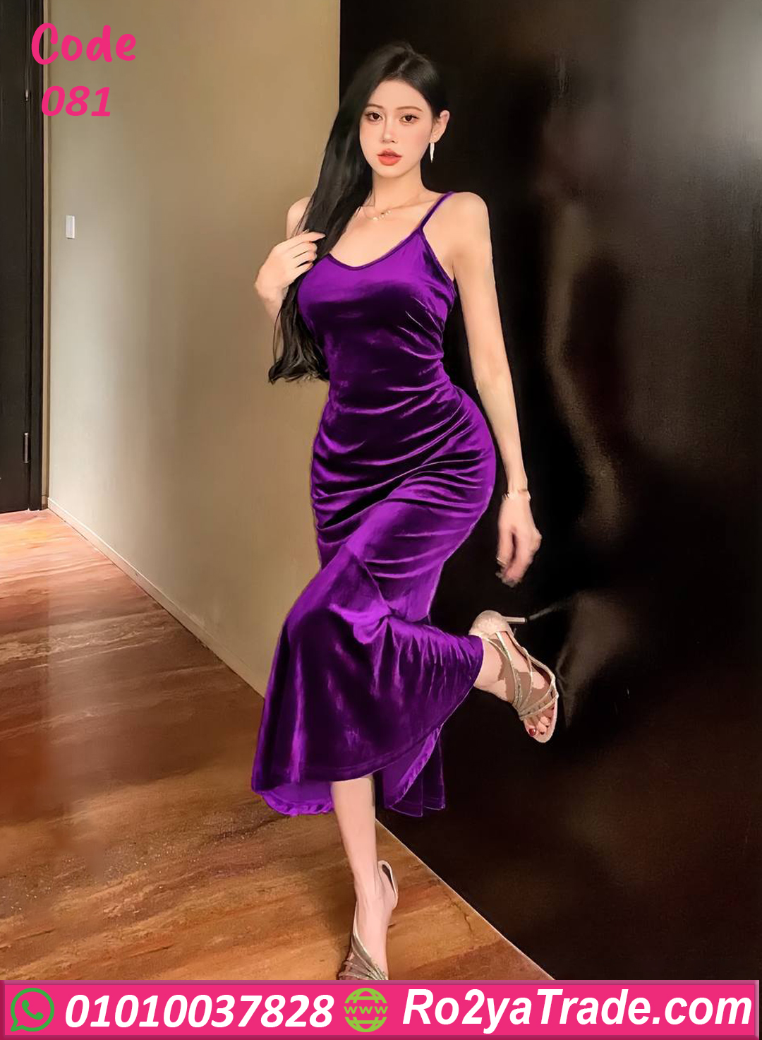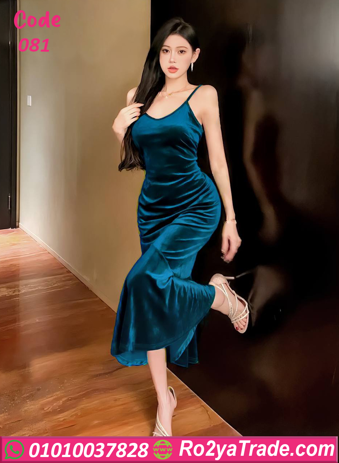فستان قطيفة شتوي ناعم موديل 081 بقصة شيك وملمس فخم يبرز قوامك بشكل أنثوي راقي. مناسب للسهرات واللوك البيتشي الأنيق.