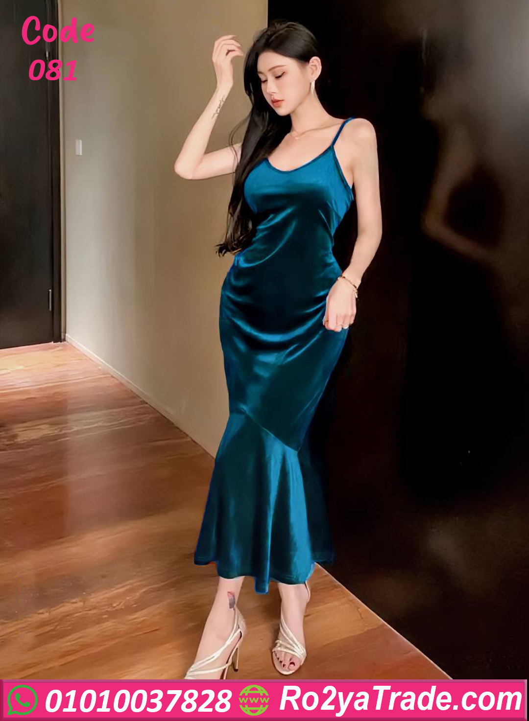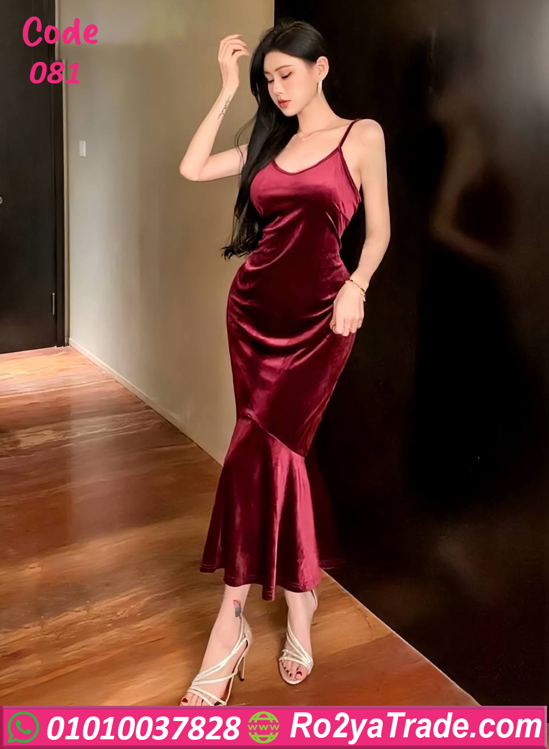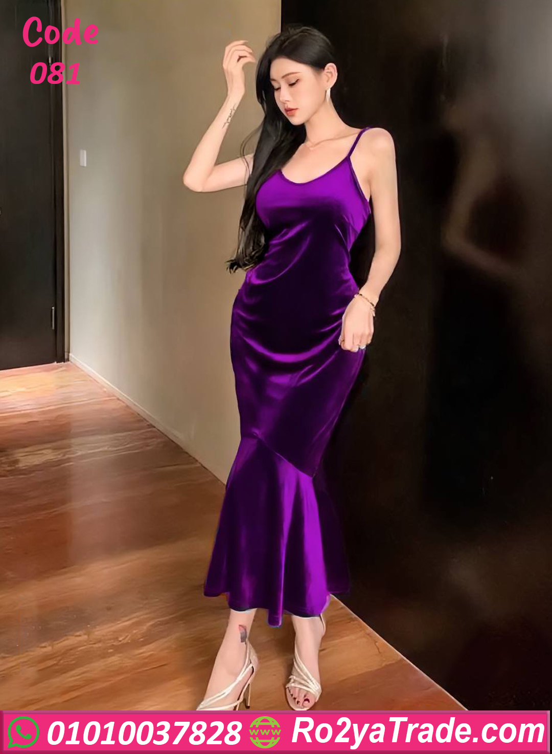 فستان قطيفة شتوي ناعم موديل 081 بقصة شيك وملمس فخم يبرز قوامك بشكل أنثوي راقي. مناسب للسهرات واللوك البيتشي الأنيق.