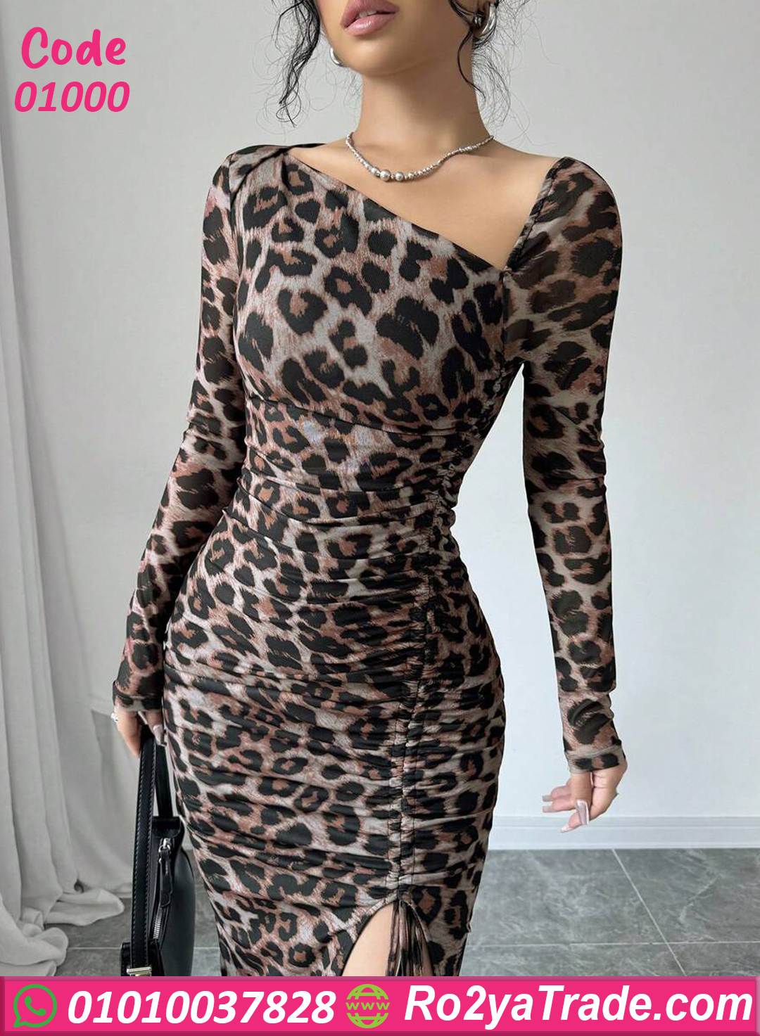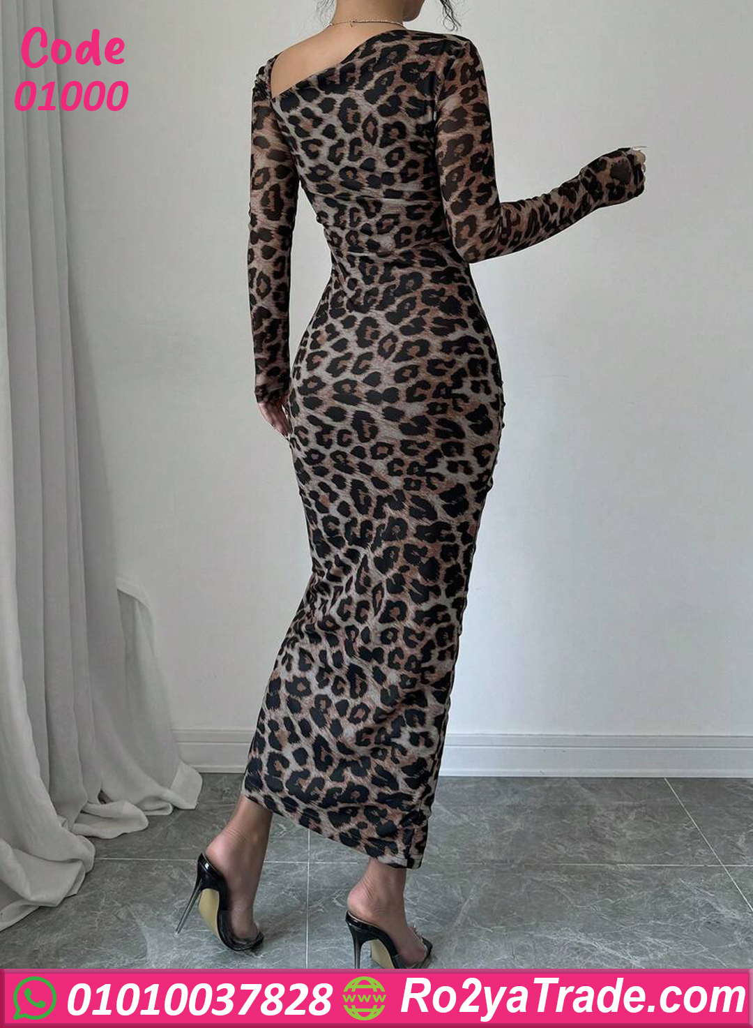 فستان ليوبارد كود 01000 هيديكي إطلالة أنثوية جريئة ومميزة تناسب خروجات المصايف والسهرات الصيفية.