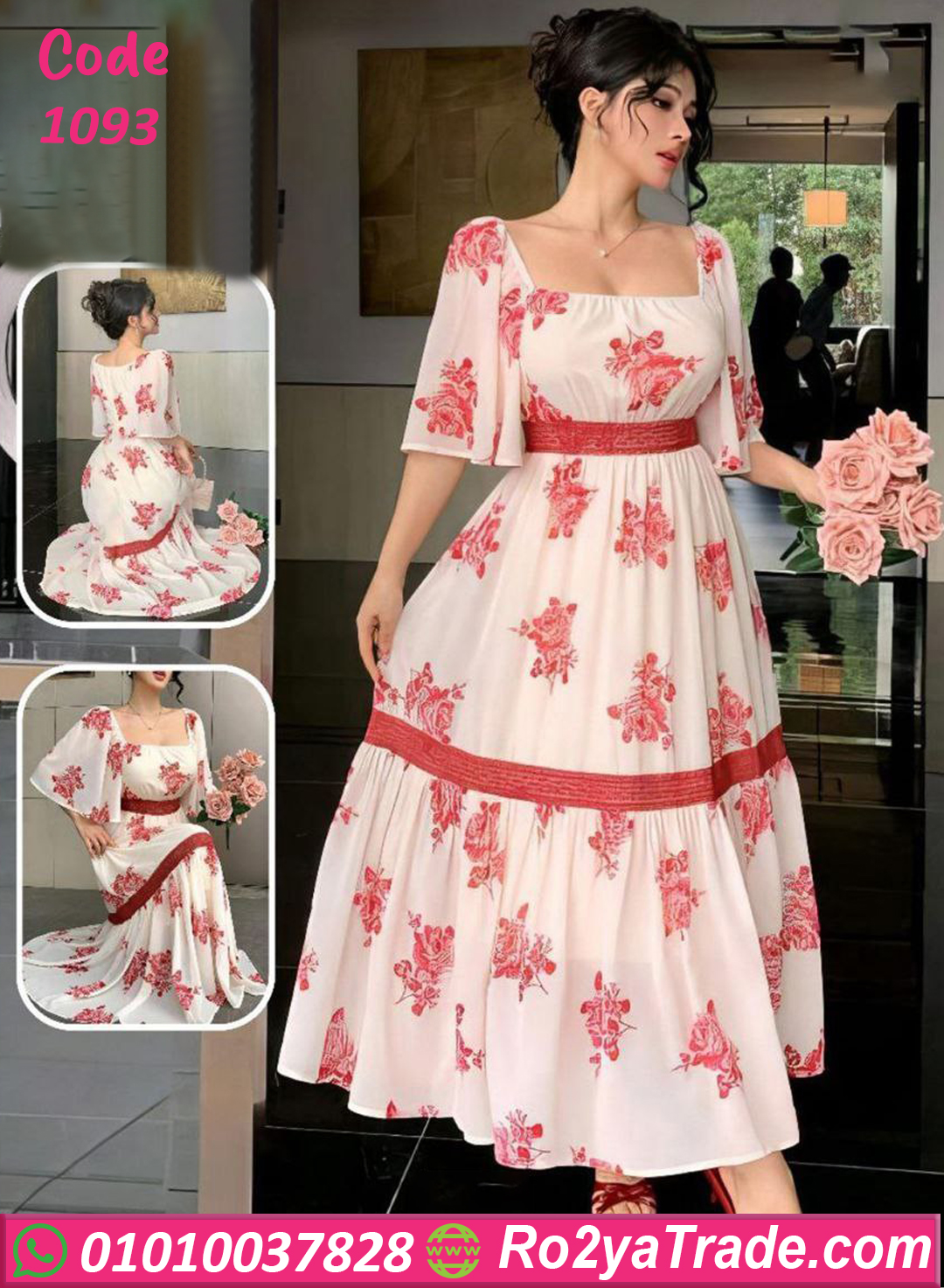 قصة A-Line مريحة وبتدي شكل An Hourglass جذاب، مع نقش الورود اللي بيكمل جماله