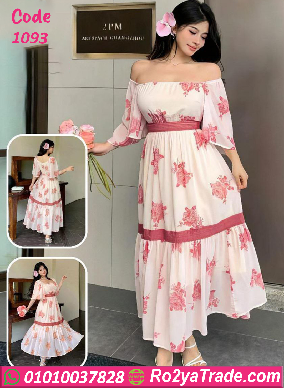 فستان وردي صيفي أنيق – 1093