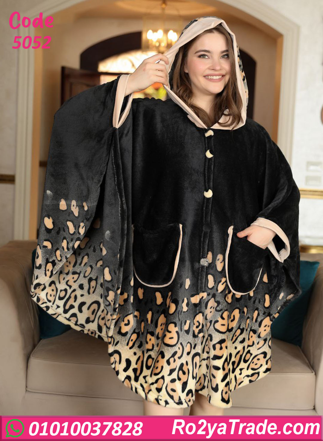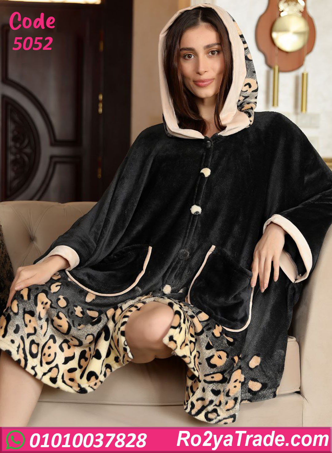 التصميم واسع بقصة مريحة مع كابيشو عملي وأزرار أمامية، مناسب للبس فوق لبس البيت أو بعد الشاور، وبيوفر حرية حركة كاملة.