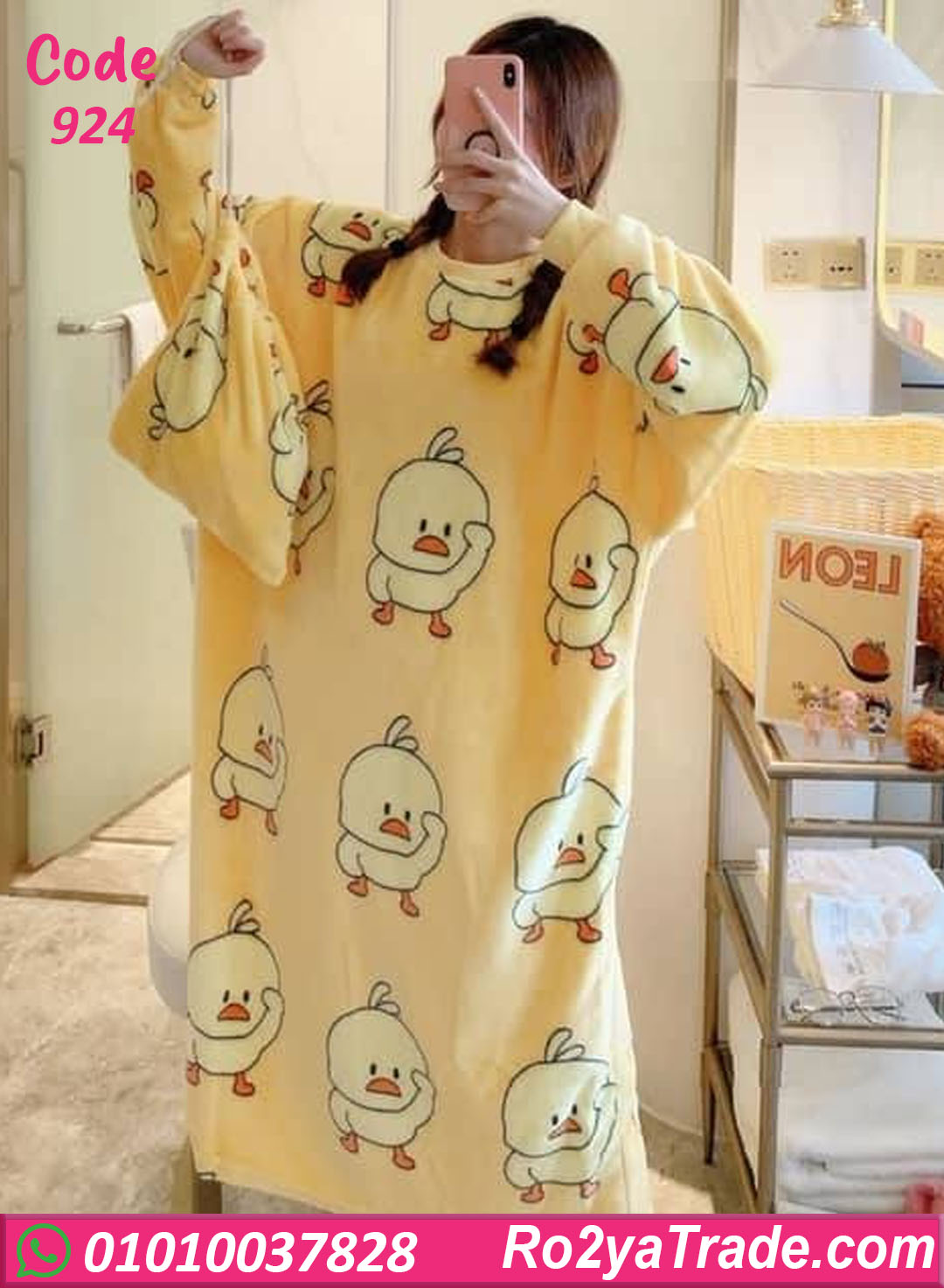 مناسب جدًا للبيت وأوقات الراحة في الشتا. التصميم الواسع والمريح مع رسومات البط الصغير بيدي شكل لطيف ومرح، وبيخلي القطعة عملية ومحبوبة في اللبس اليومي.
