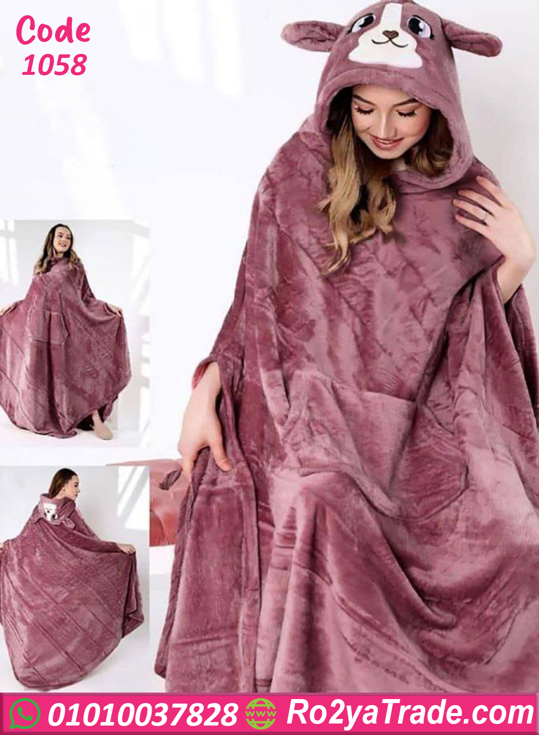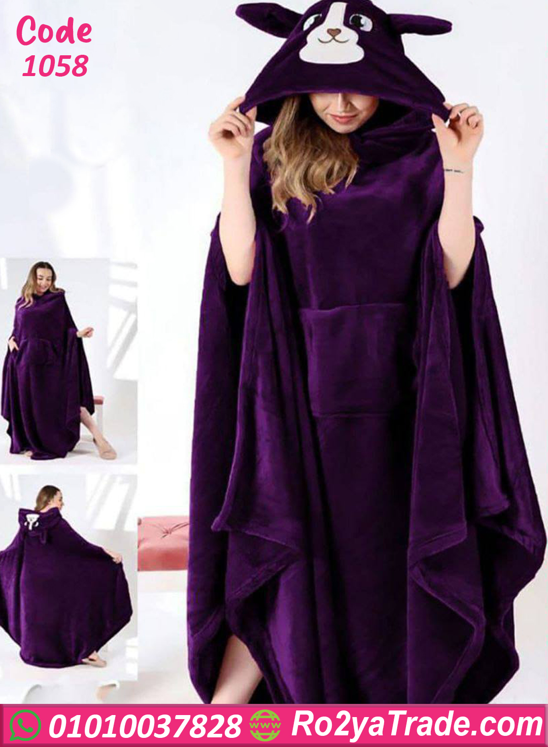 كاش مايوه شتوي ناعم جدًا بخامة قطيفة تقيلة بتدي تدفئة ممتازة، مع تصميم الهودي الكيوت اللي عليه ودان ووش كرتوني بيضيف لمسة لطيفة وشكل مختلف. مناسب للبس البيتي في الحرّ والبرد ومثالي للشتا.
