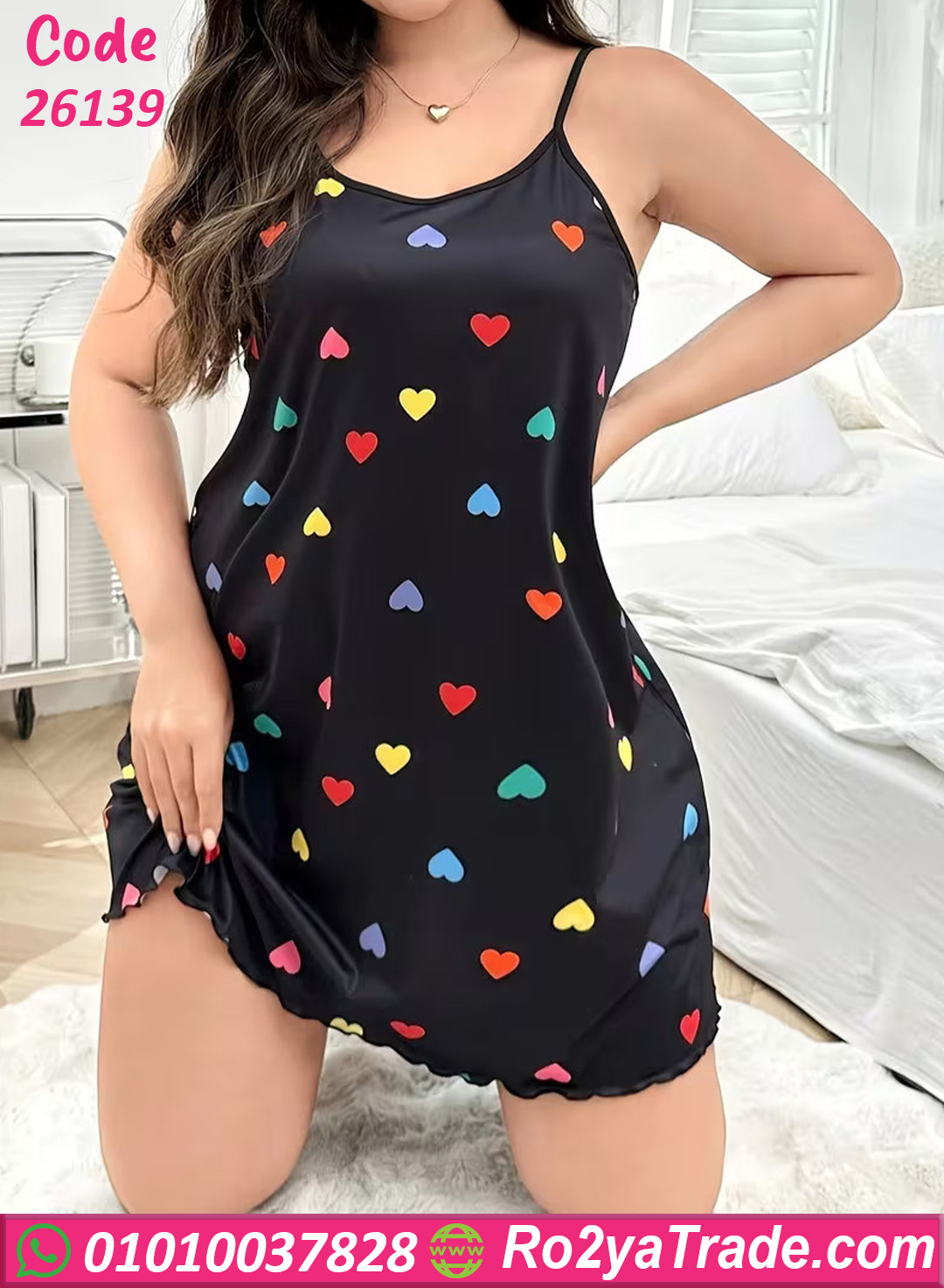 كاش حريمي صيفي بيج سايز بتصميم بسيط وجذاب بطبعات قلوب ملونة، يمنحك إطلالة مرحة ومريحة داخل المنزل أو على البحر.