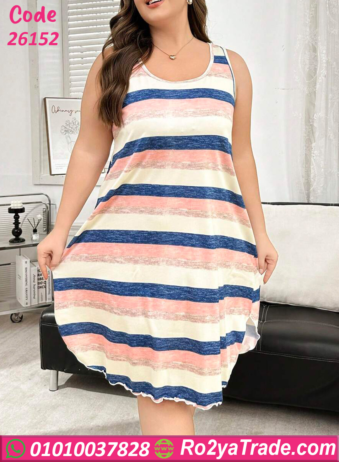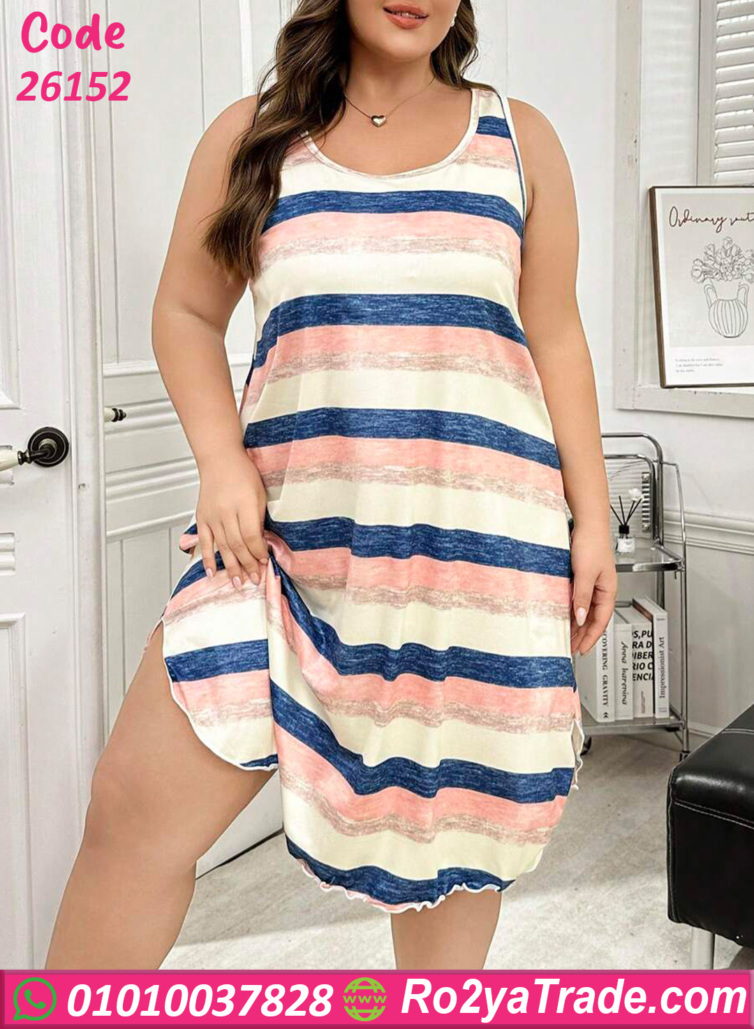 كاش حريمي صيفي بيج سايز بتصميم عصري بنقشة خطوط ملونة أنيقة، يمنحك إطلالة مريحة وجذابة مثالية للمصيف أو للاستخدام كملابس بيت صيفية خفيفة.