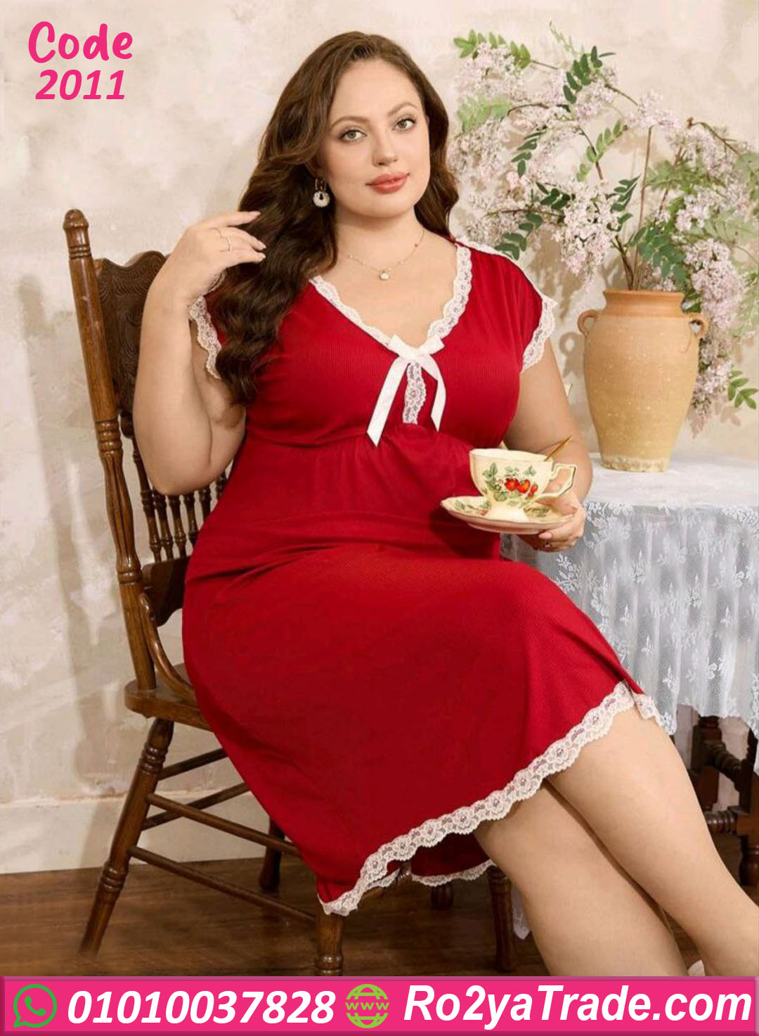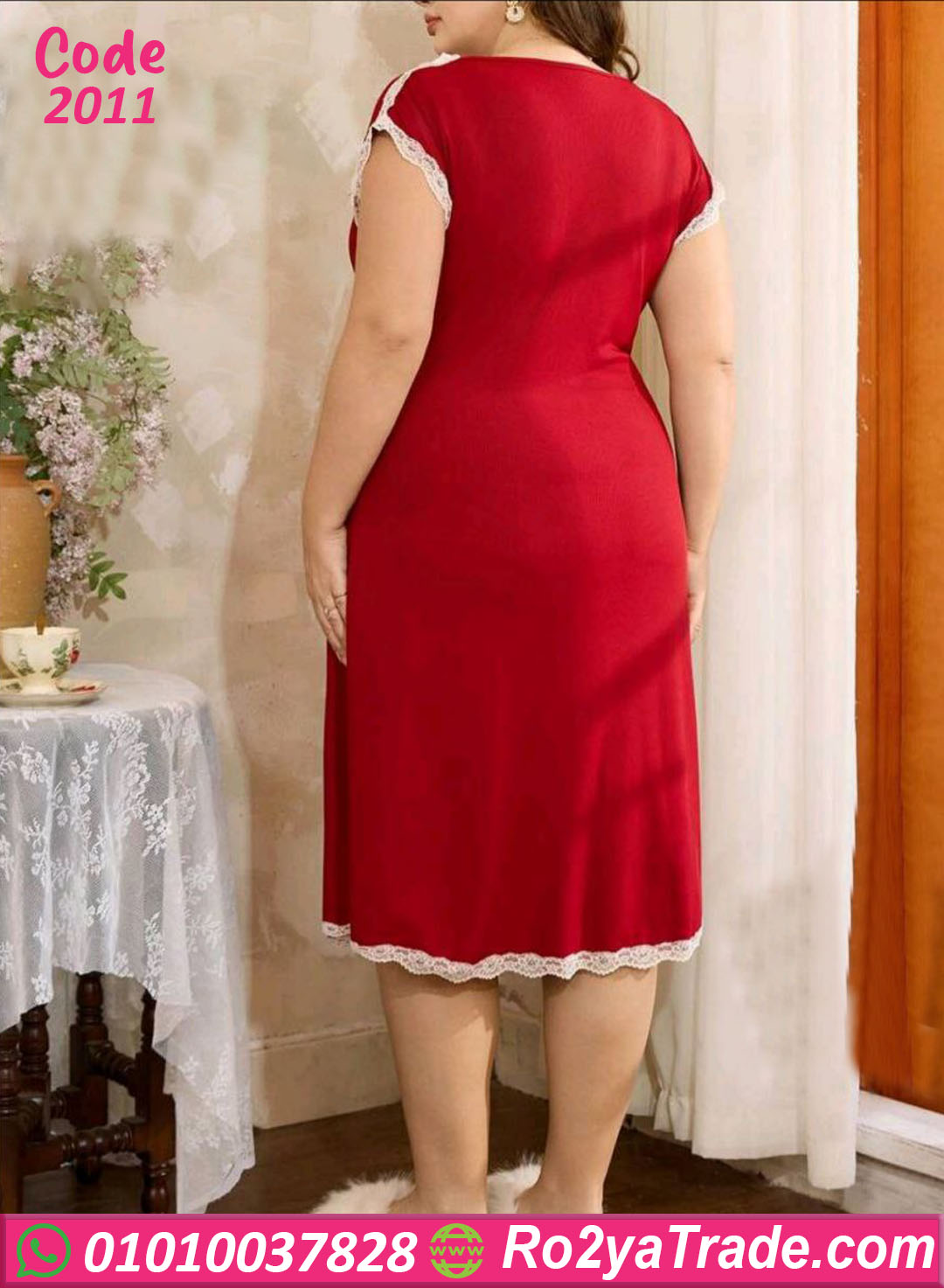 كاش مايوه بيتي صيفي حريمي بخامة ناعمة وخفيفة، تصميم أنثوي كيوت بتفاصيل دانتيل رقيقة عند الصدر والحواف، مناسب للبيج سايز ويدي إحساس بالراحة والنعومة في اللبس البيتي.