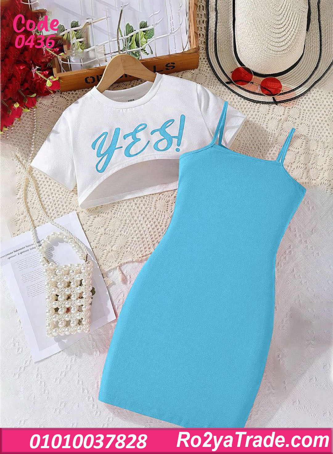 كاش مايوه بيتي صيفي كود 0436 من ماركة La Rose، طقم صيفي شبابي وعملي مناسب للمصيف أو الخروجات الصيفية الخفيفة.