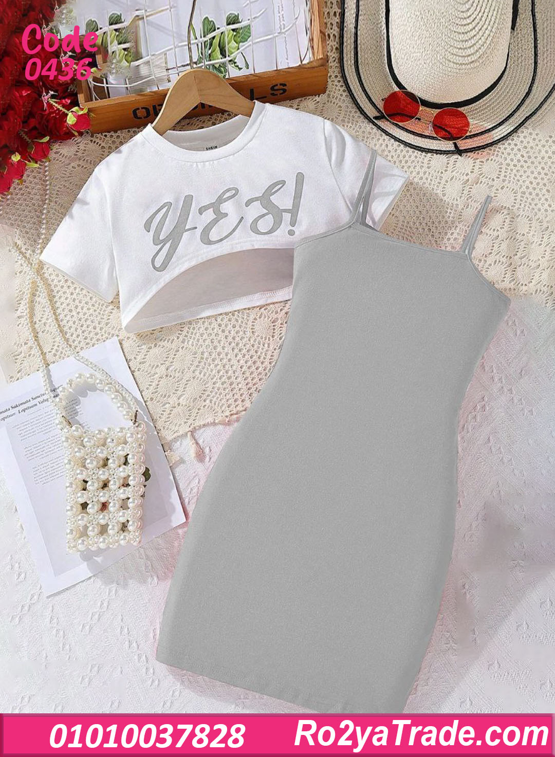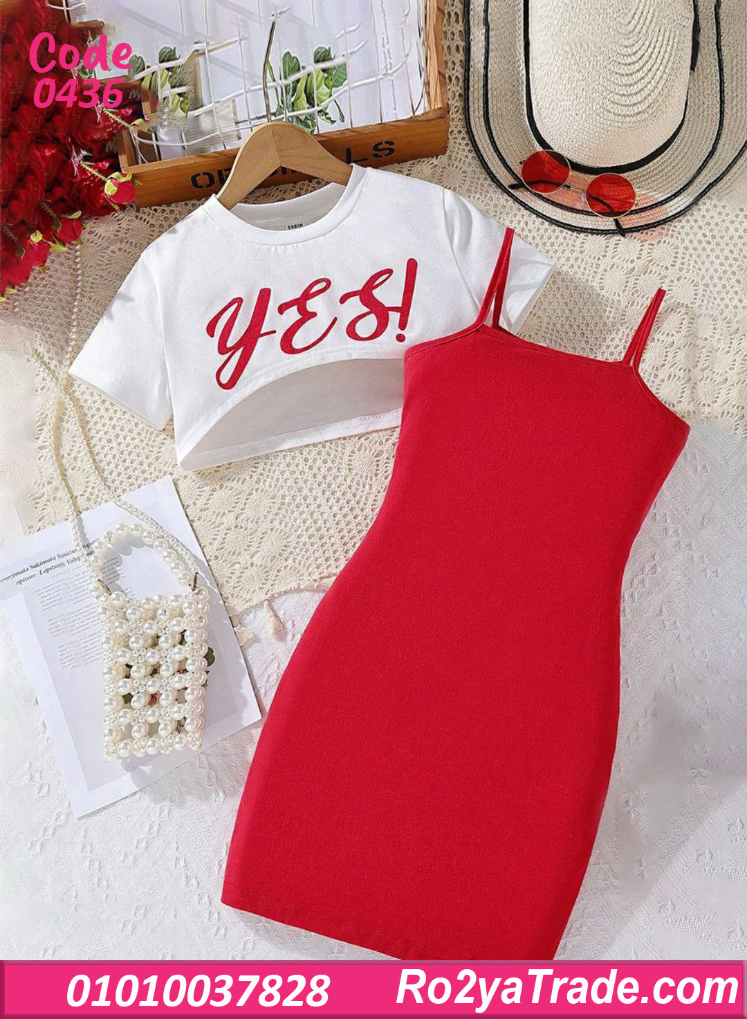 ✔ توب أبيض قصير مطبوع عليه كلمة “YES!” باللون الأحمر