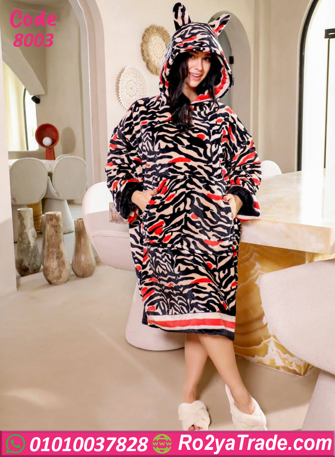كاش مايوه بيتي شتوي قصير خامة قطيفة ناعمة بنقشة تايجر مميزة، تصميم واسع مريح