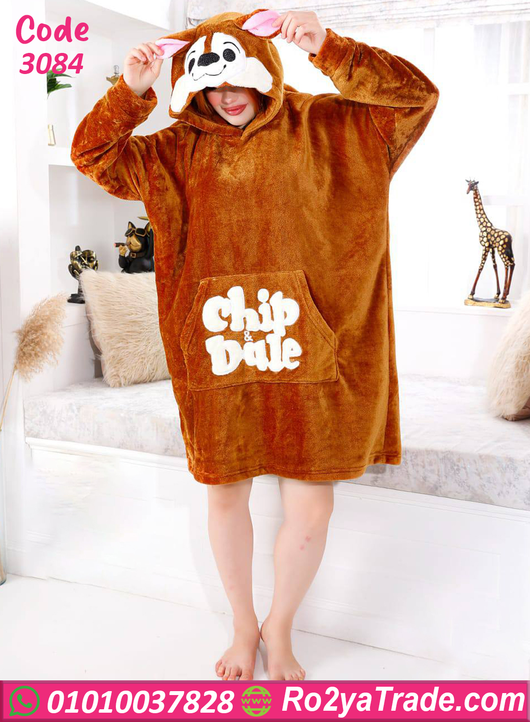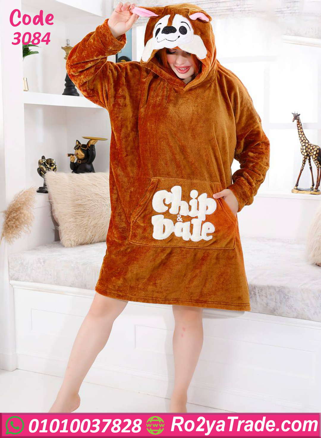 بتصميم فضفاض مناسب لكل المقاسات وغطاء رأس بتفاصيل وجه شيب آند ديل الكرتوني اللطيف 💫