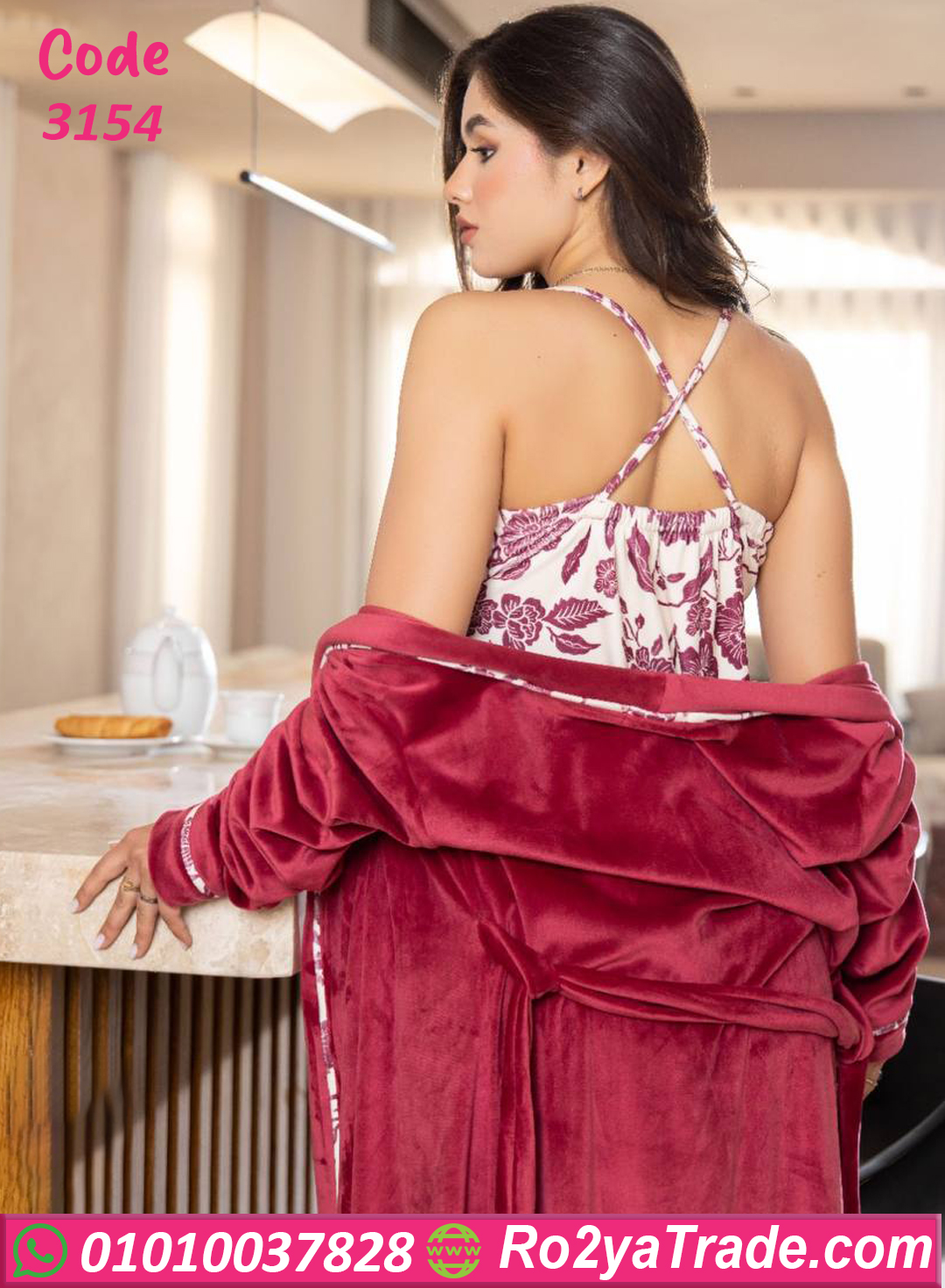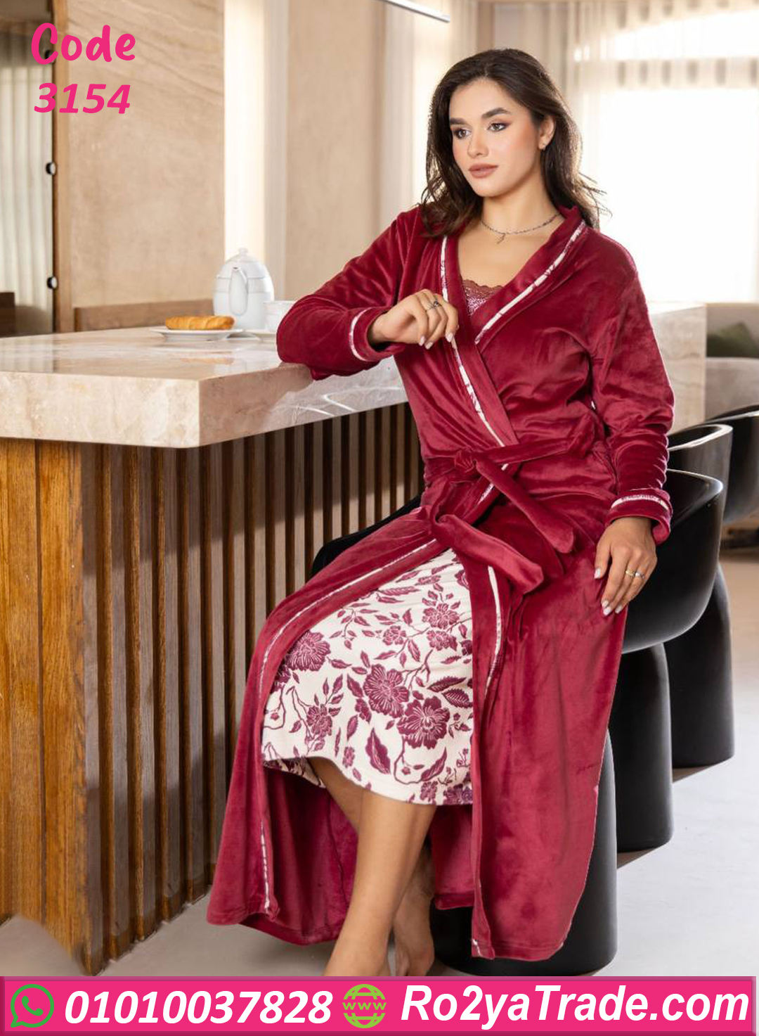 كاش مايوه شتوي دافي جداً بخامة قطيفة ناعمة وروب طويل أنيق